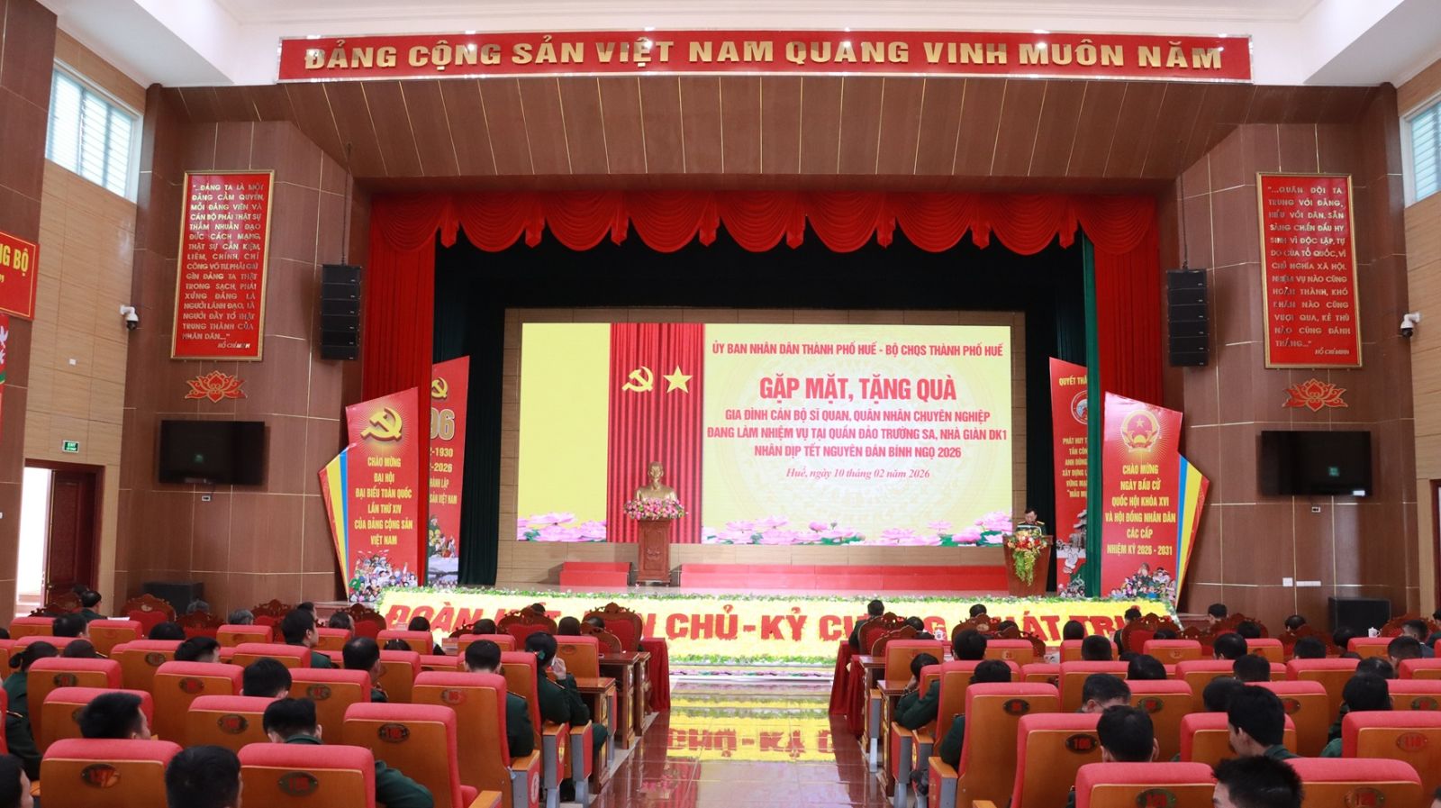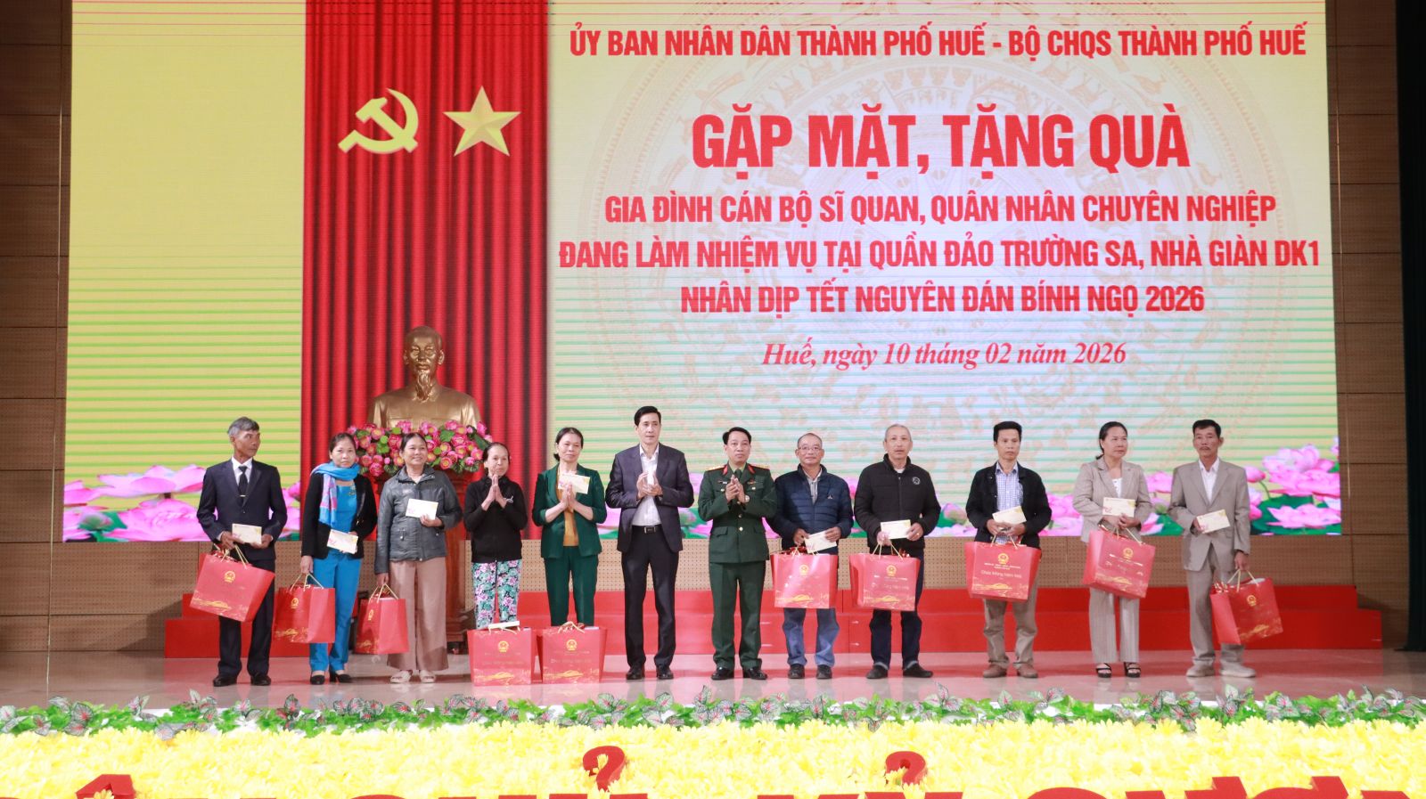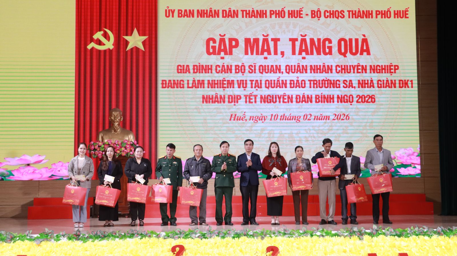 Tại chương trình, thừa ủy quyền, lãnh đạo Bộ CHQS thành phố và lãnh đạo Ủy ban mặt trận Tổ quốc Việt Nam thành phố, Ban Tuyên giáo và Dân vận Thành ủy đã trao 21 suất quà Tết tặng 21 gia đình cán bộ sĩ quan, QNCN là con em của thành phố Huế đang làm nhiệm vụ tại Quần đảo Trường Sa, Nhà giàn DK1.