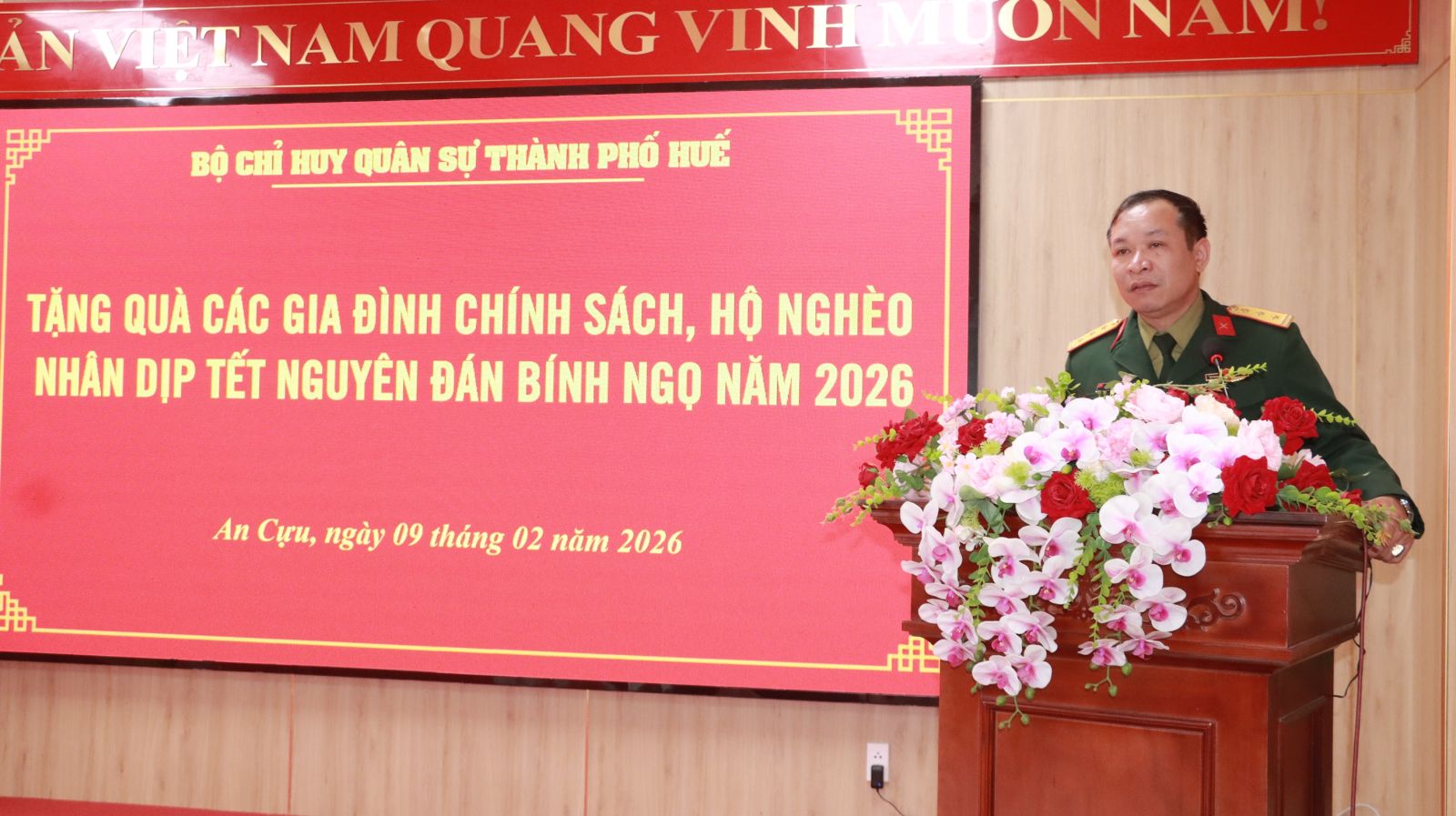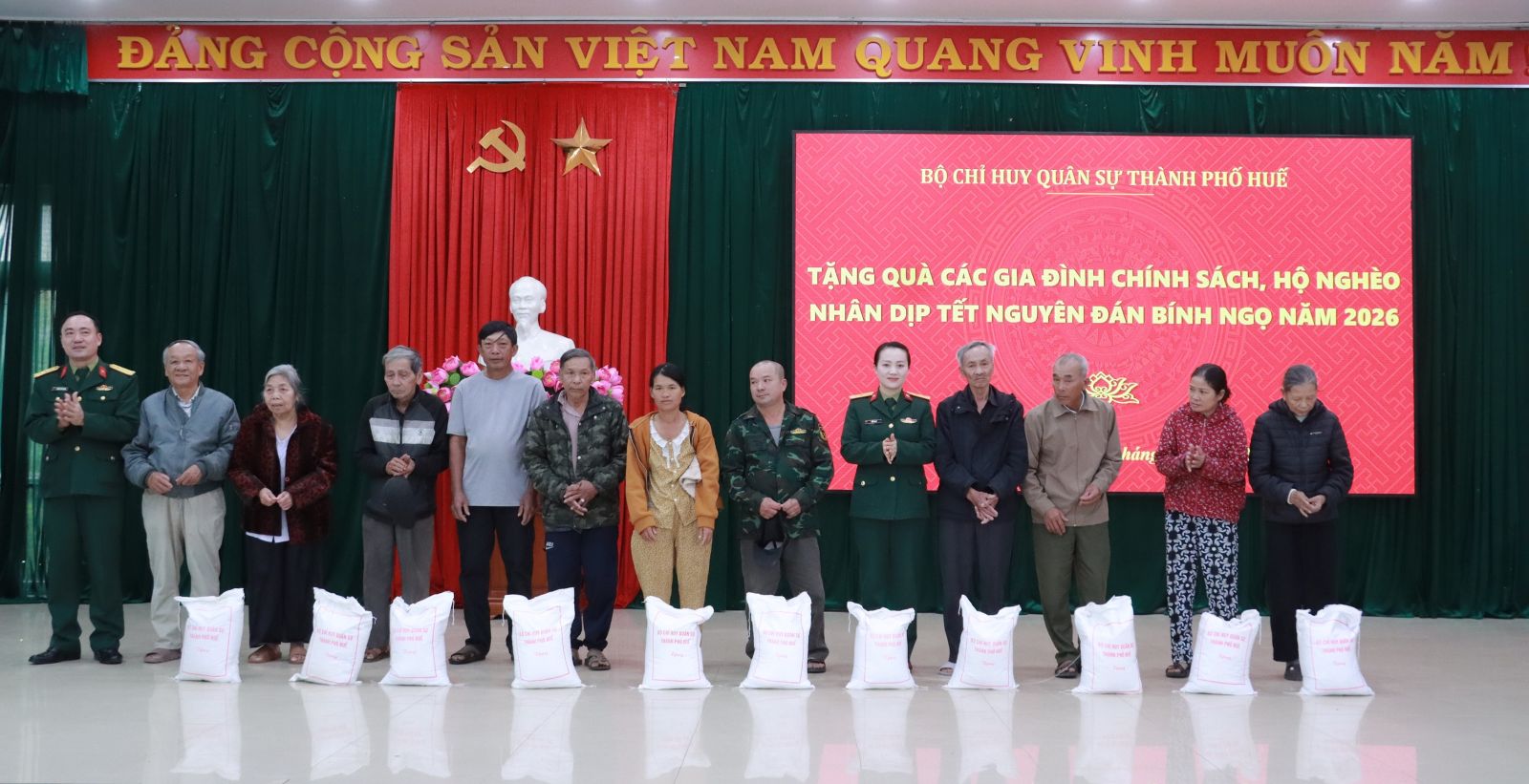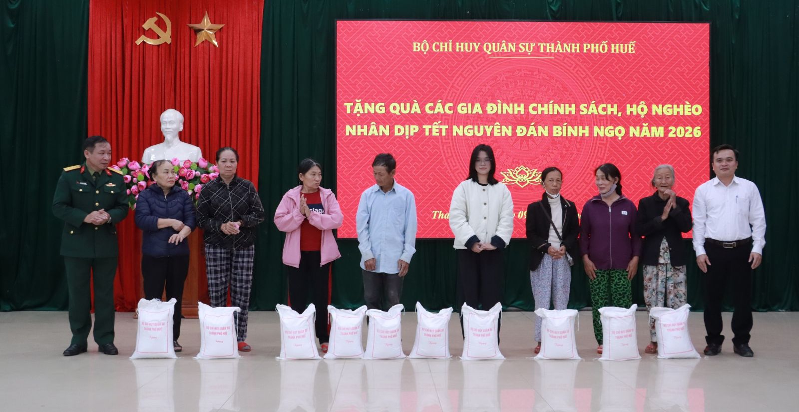 Nhân dịp chuẩn bị đón Tết cổ truyền Bính Ngọ, sáng ngày 9/02/2026, Bộ Chỉ huy Quân sự (CHQS) thành phố đã tổ chức trao tặng 2 tấn gạo cho các gia đình chính sách, hộ nghèo trên địa bàn phường An Cựu và phường Thanh Thủy.