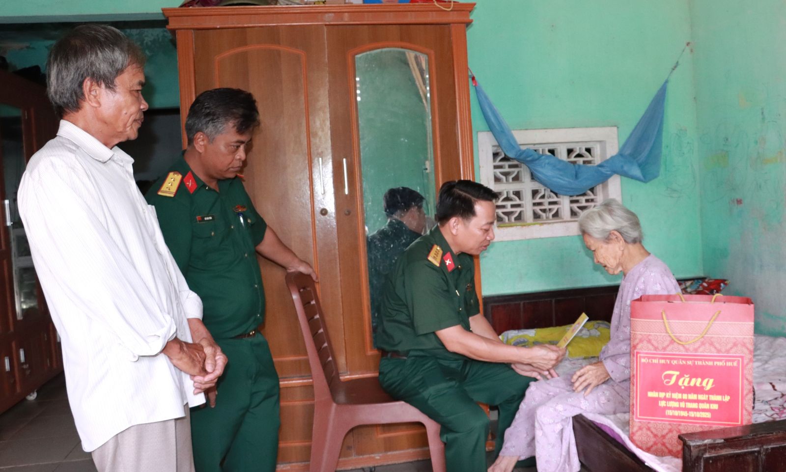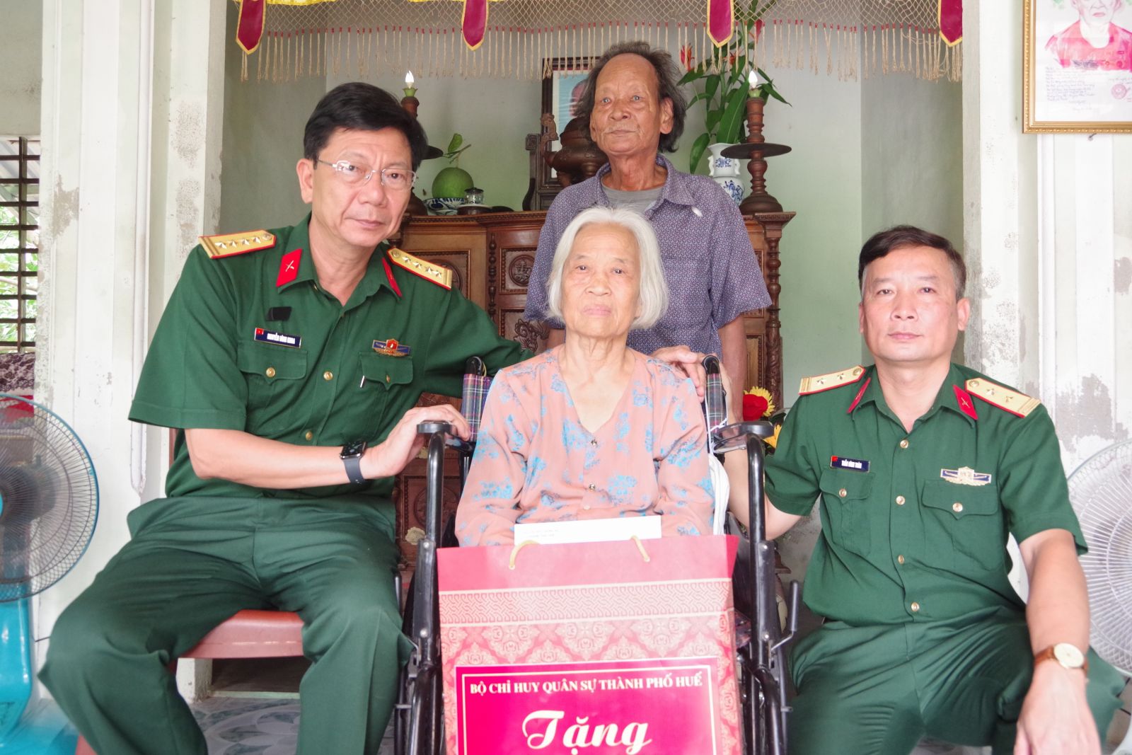 Lãnh đạo Bộ CHQS thành phố đã đến thăm và tặng quà mẹ Việt Nam Anh hùng Tống Thị Nhơn, hiện ở tại phường Phú Xuân, mẹ Việt Nam Anh hùng Ngô Thị Thiện, ở phường Hương Trà, mẹ Việt Nam Anh hùng Nguyễn Thị Thanh Xuân, ở phường Kim Long; dâng hương, tri ân liệt sĩ Nguyễn Văn Bình ở phường Hương Trà và liệt sĩ Phạm Văn Hướng ở phường Thuận Hóa, thành phố Huế.