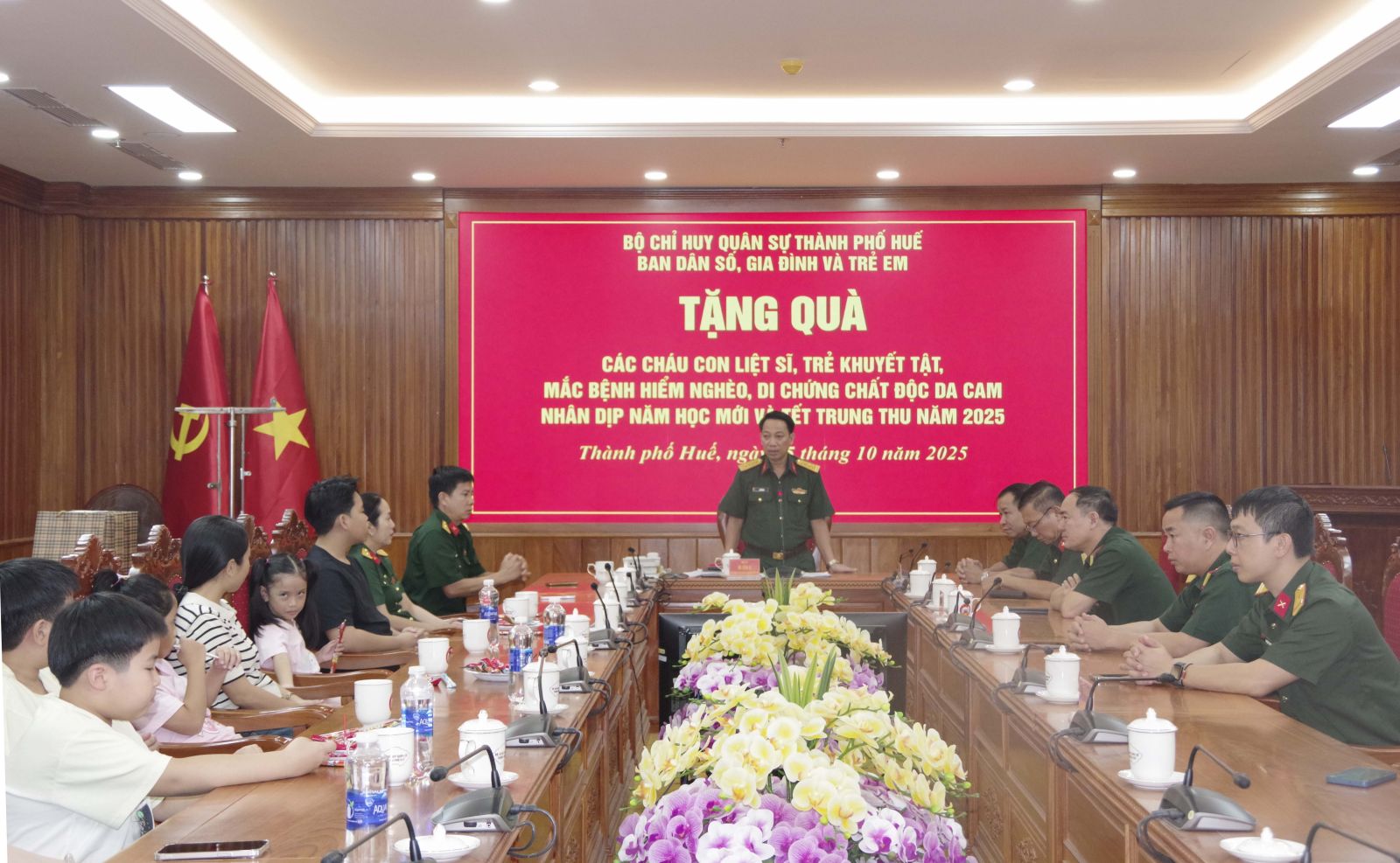 Nhằm động viên, khích lệ những nỗ lực, cố gắng của các cháu trong năm học vừa qua. Chiều ngày 05/10 Bộ CHQS thành phố đã tổ chức chương trình Tết trung thu, vui hội trăng rằm và tặng quà cho các cháu thiếu nhi là con em của cán bộ sĩ quan, quân nhân chuyên nghiệp thuộc cơ quan Bộ CHQS thành phố. Tham dự và trao quà cho các cháu có Đại tá Phan Thắng – UVTV thành uỷ, Chỉ huy trưởng, Thượng tá Trương Viết Hải – Phó bí thư thường trực Đảng ủy, Chính uỷ Bộ CHQS thành phố, các đồng chí trong Ban thường vụ, Thủ trưởng Bộ CHQS thành phố và các cháu thiếu nhi là con em của cán bộ, nhân viên Bộ CHQS thành phố.