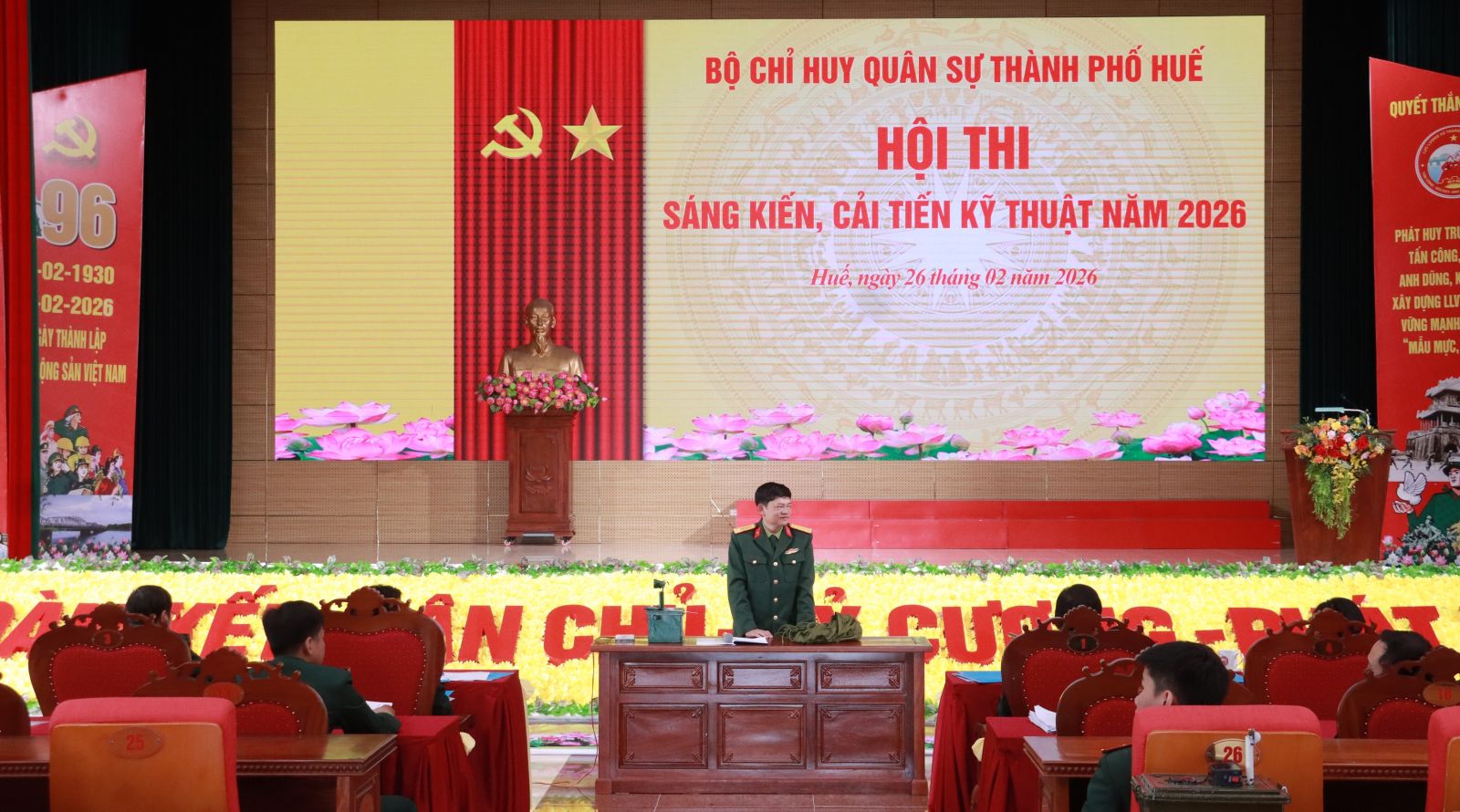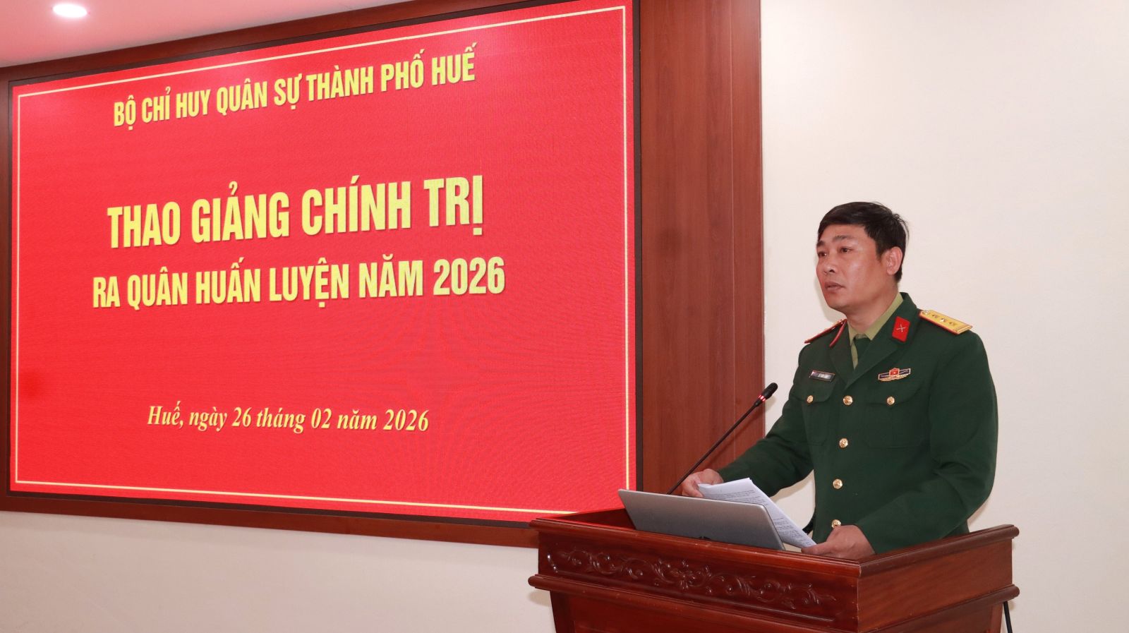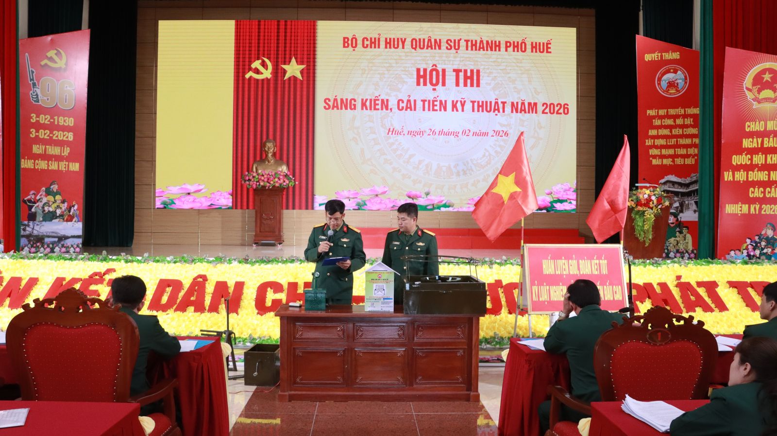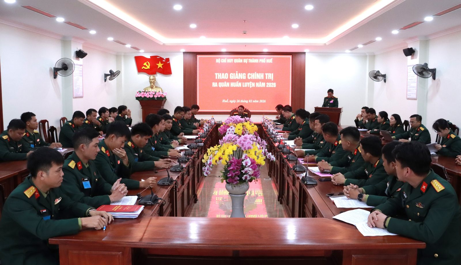 Nhằm đánh giá đúng trình độ, năng lực và chuẩn bị tốt nhất mọi mặt cho mùa huấn luyện mới năm 2026. Ngày 26/02, Bộ Chỉ huy Quân sự (CHQS) thành phố và các Ban Chỉ huy Phòng thủ khu vực đã tổ chức thành công Hội thi thao giảng chính trị ra quân huấn luyện và Hội thi sáng kiến, cải tiến kỹ thuật năm 2026. Đại tá Trương Viết Hải, Thành ủy viên, Phó Bí thư Thường trực Đảng ủy, Chính ủy và Đại tá Hà Văn Ái, UVTV Đảng ủy Quân sự, Phó Chính ủy Bộ CHQS thành phố dự chỉ đạo.