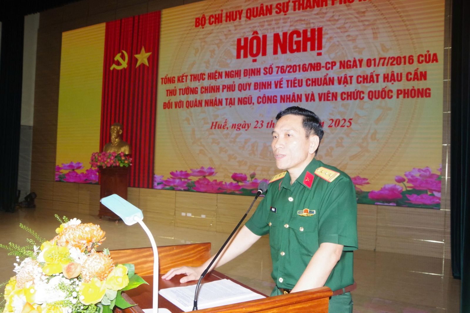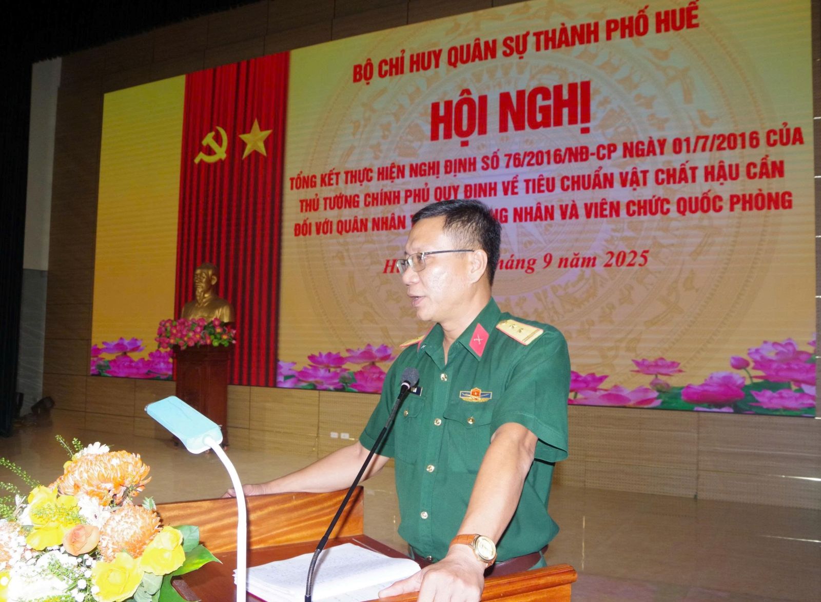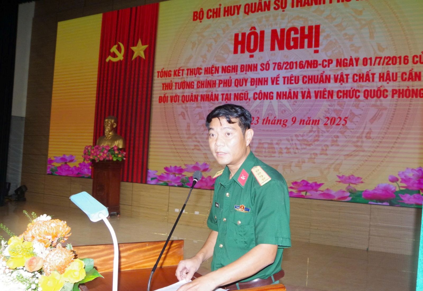 Báo cáo tại hội nghị cho thấy, giai đoạn 2016 - 2025, Bộ CHQS thành phố đã quán triệt, triển khai thực hiện nghiêm túc các quy định của Nghị định. Cụ thể, tỷ lệ bảo đảm tiêu chuẩn ăn hằng ngày đạt 100% theo định lượng; 100% quân nhân được cấp phát đầy đủ trang phục theo đúng chế độ, chất lượng công tác hậu cần ngày càng được nâng lên rõ rệt. Công tác chăm sóc sức khỏe được quan tâm, 100% cán bộ, chiến sĩ các cơ quan, đơn vị được khám sức khỏe định kỳ…đã góp phần tích cực nâng cao chất lượng công tác bảo đảm hậu cần, nâng cao đời sống vật chất, tinh thần bộ đội; môi trường làm việc sinh hoạt ngày càng chính quy nền nếp, đáp ứng yêu cầu xây dựng Quân đội, cũng cố quốc phòng và bảo vệ Tổ quốc.