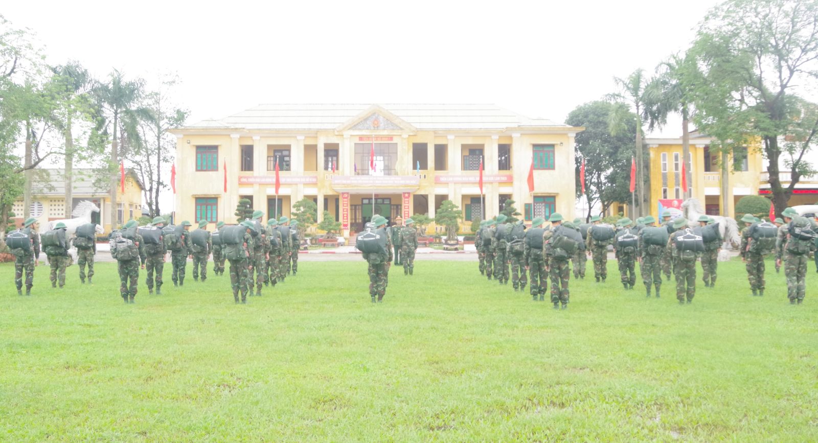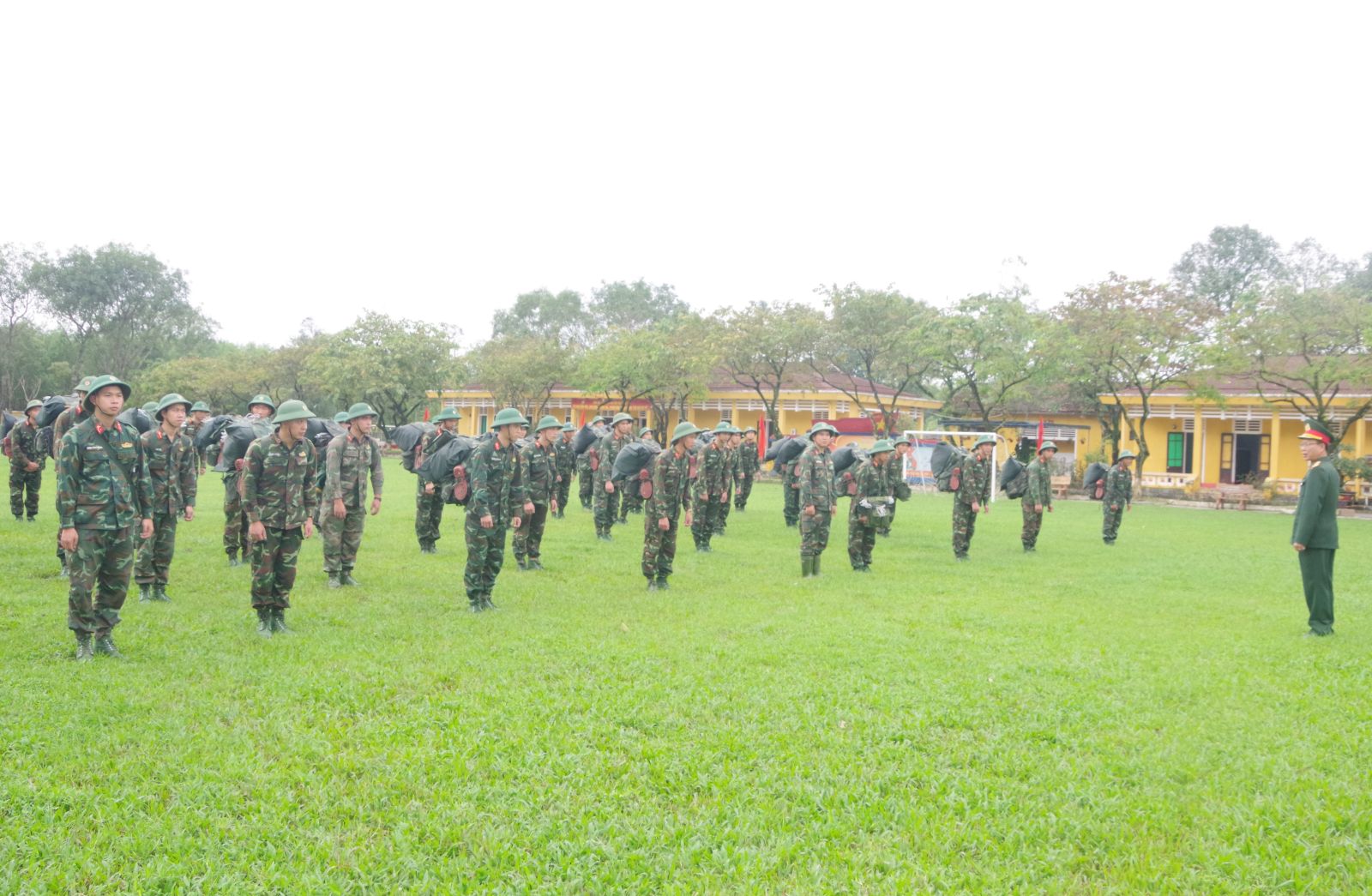 Cán bộ chiến sĩ tham gia hành quân dã ngoại làm công tác dân vận
