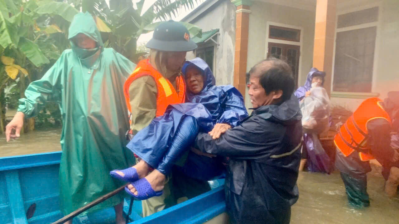 Chiều và đêm 27/10, trên địa bàn thành phố Huế tiếp tục có mưa to cùng với nước lũ dâng cao làm hàng chục ngàn nhà dân và các công sở, trường học, bệnh viện bị ngập sâu, ảnh hưởng nghiêm trọng đến an toàn tính mạng người dân. Thực hiện chỉ đạo Bộ Tư lệnh Quân khu 4 và UBND thành phố Huế, Bộ Chỉ huy Quân sự thành phố Huế đã điều động hàng ngàn lượt cán bộ, chiến sĩ thường trực và dân quân tự vệ cùng nhiều phương tiện khẩn trương hỗ trợ di chuyển bệnh nhân và sơ tán nhân dân đến nơi an toàn.