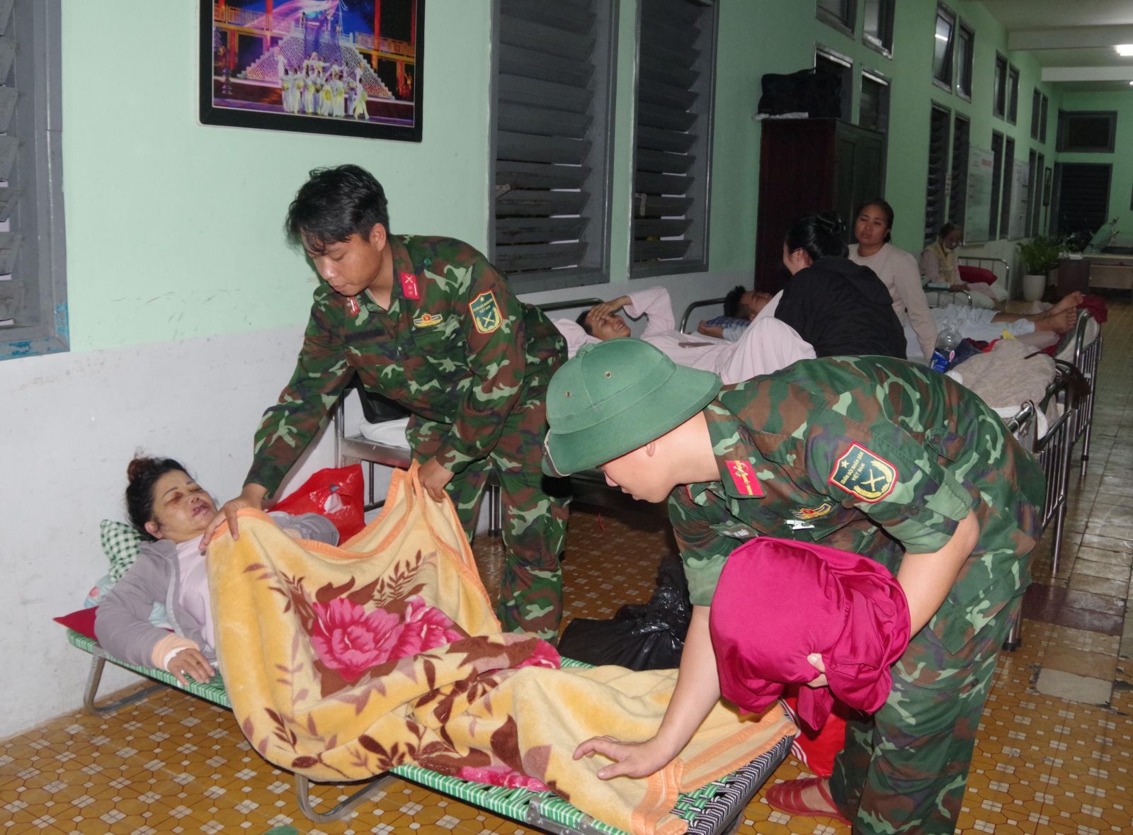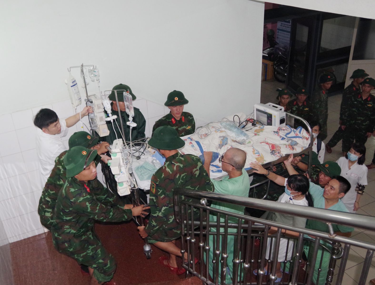 Mặc dù việc di chuyển các bệnh nhân và hệ thống trang thiết bị, máy móc từ tầng 1 của Bệnh viện Trung ương Huế lên các tầng cao hơn gặp rất khó khăn, song với tinh thần trách nhiệm cao nhất, tất cả vì an toàn tính mạng của người dân và tài sản của bệnh viện, cán bộ, chiến sĩ Bộ Chỉ huy Quân sự thành phố Huế đã không quản khó khăn, vất vả, làm việc với tinh thần nhanh nhất, khẩn trương nhất để hỗ trợ di chuyển bệnh nhân lên khu vực an toàn.