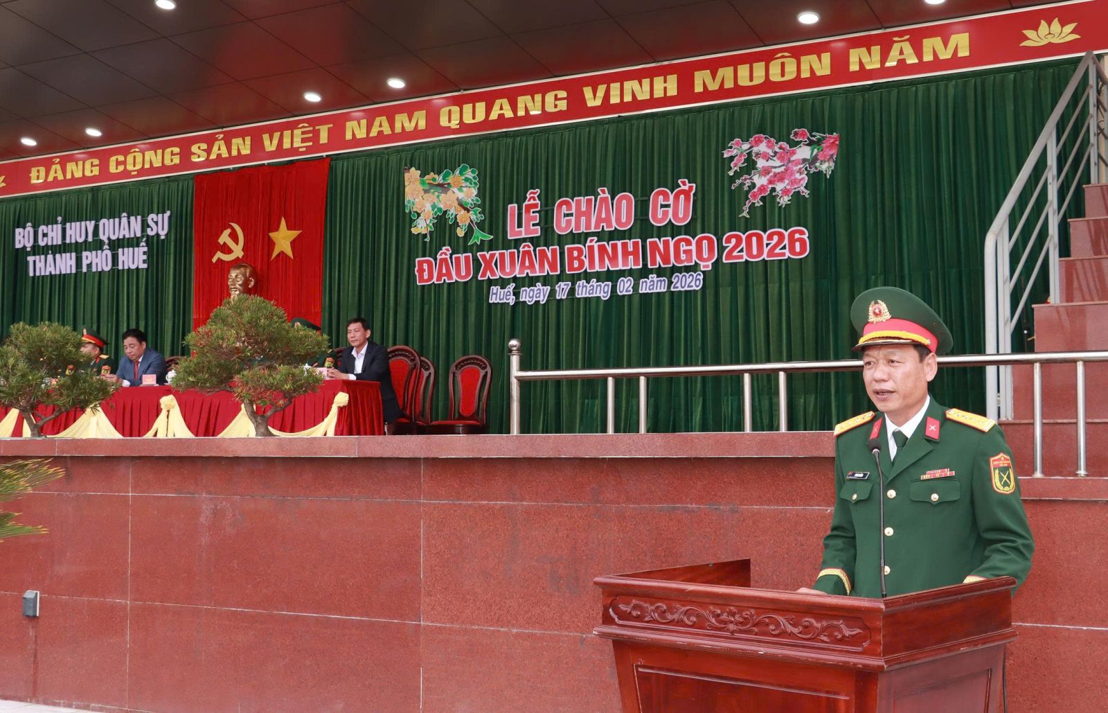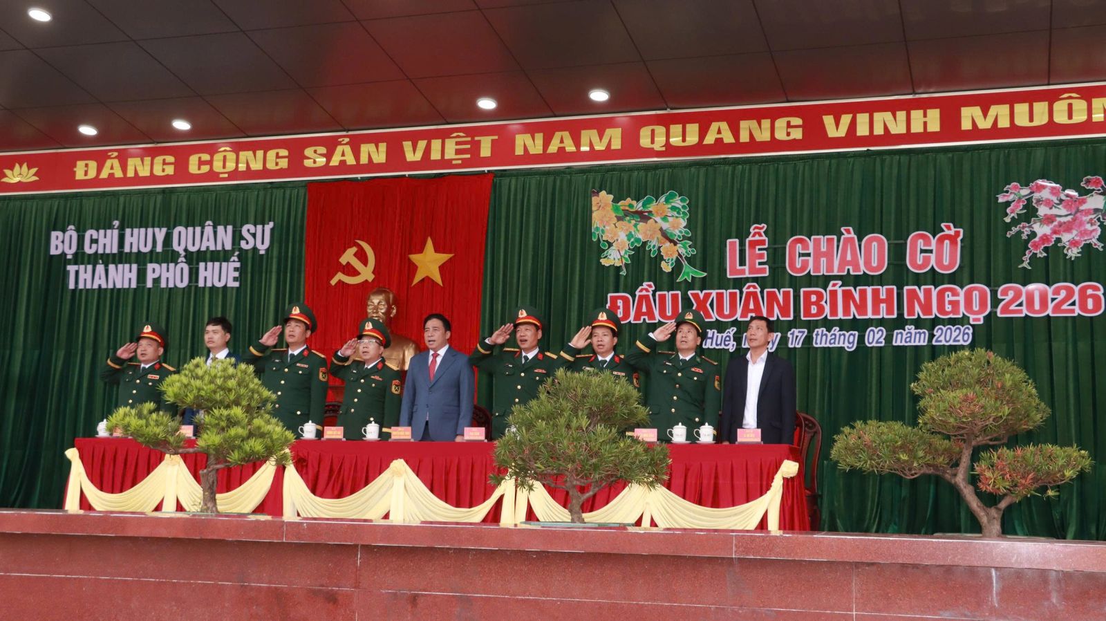 Sáng 17/2 (mùng 1 Tết), trong không khí thiêng liêng của thời khắc đầu Xuân mới Bính Ngọ 2026, tại Bộ Chỉ huy Quân sự thành phố, Đồng chí Nguyễn Khắc Toàn - Ủy viên Trung ương Đảng, Chủ tịch UBND thành phố Huế đã đến dự Lễ chào cờ đầu năm và chúc Tết cán bộ, chiến sĩ lực lượng vũ trang (LLVT) thành phố.