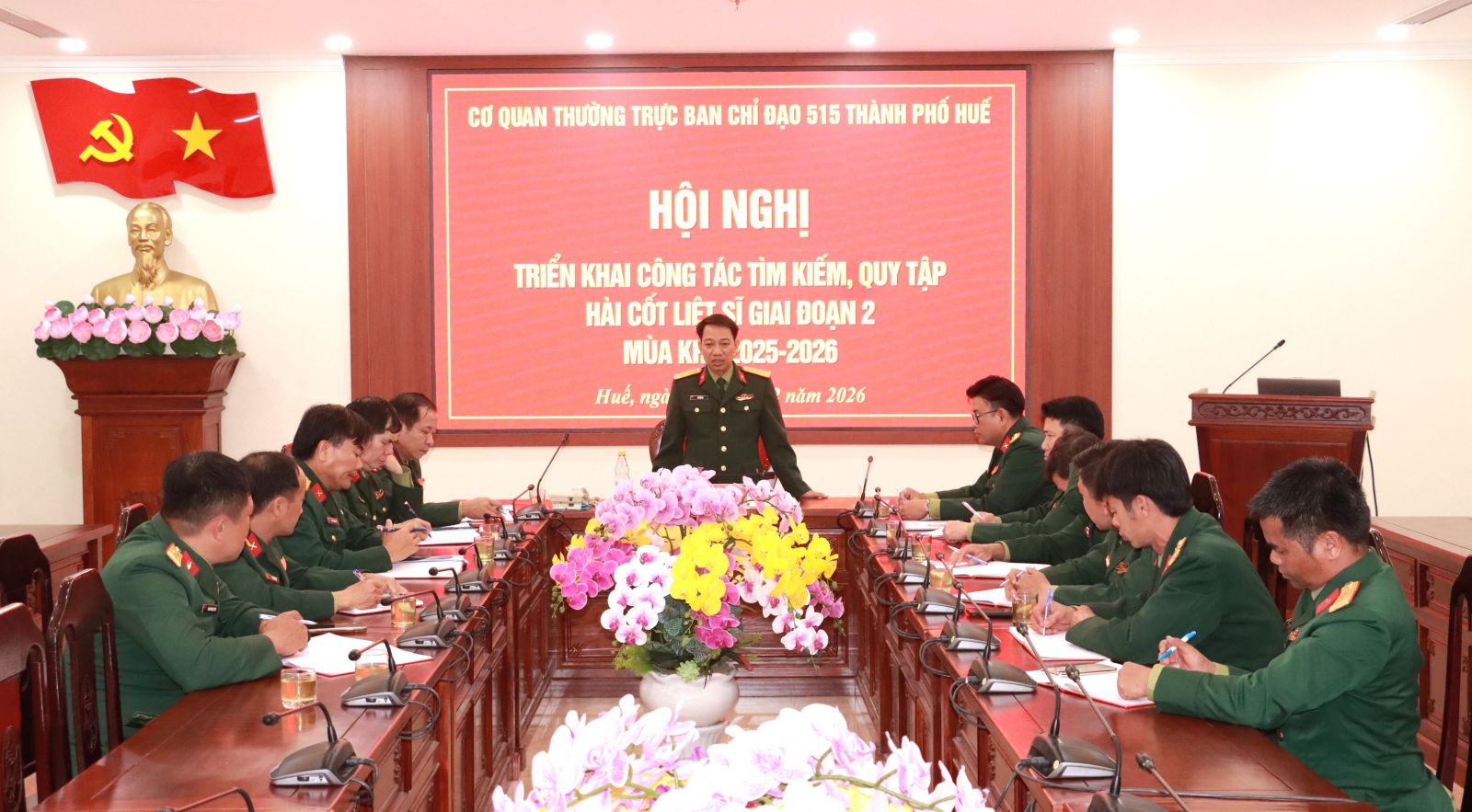 Chiều ngày 26/02/2026, Bộ Chỉ huy Quân sự (CHQS) thành phố - Cơ quan thường trực Ban Chỉ đạo 515 thành phố tổ chức hội nghị triển khai công tác tìm kiếm, quy tập hài cốt liệt sĩ (HCLS) địa bàn trong nước, giai đoạn 2 mùa khô 2025-2026. Đại tá Hà Văn Ái, UVTV Đảng ủy Quân sự, Phó Chính ủy Bộ CHQS thành phố chủ trì hội nghị.