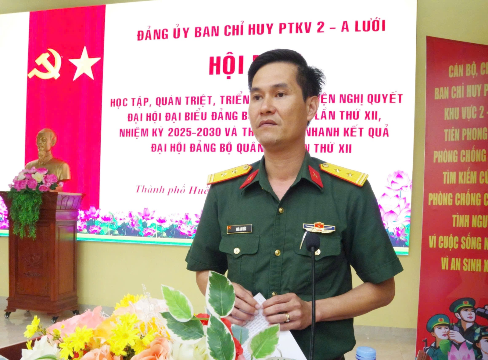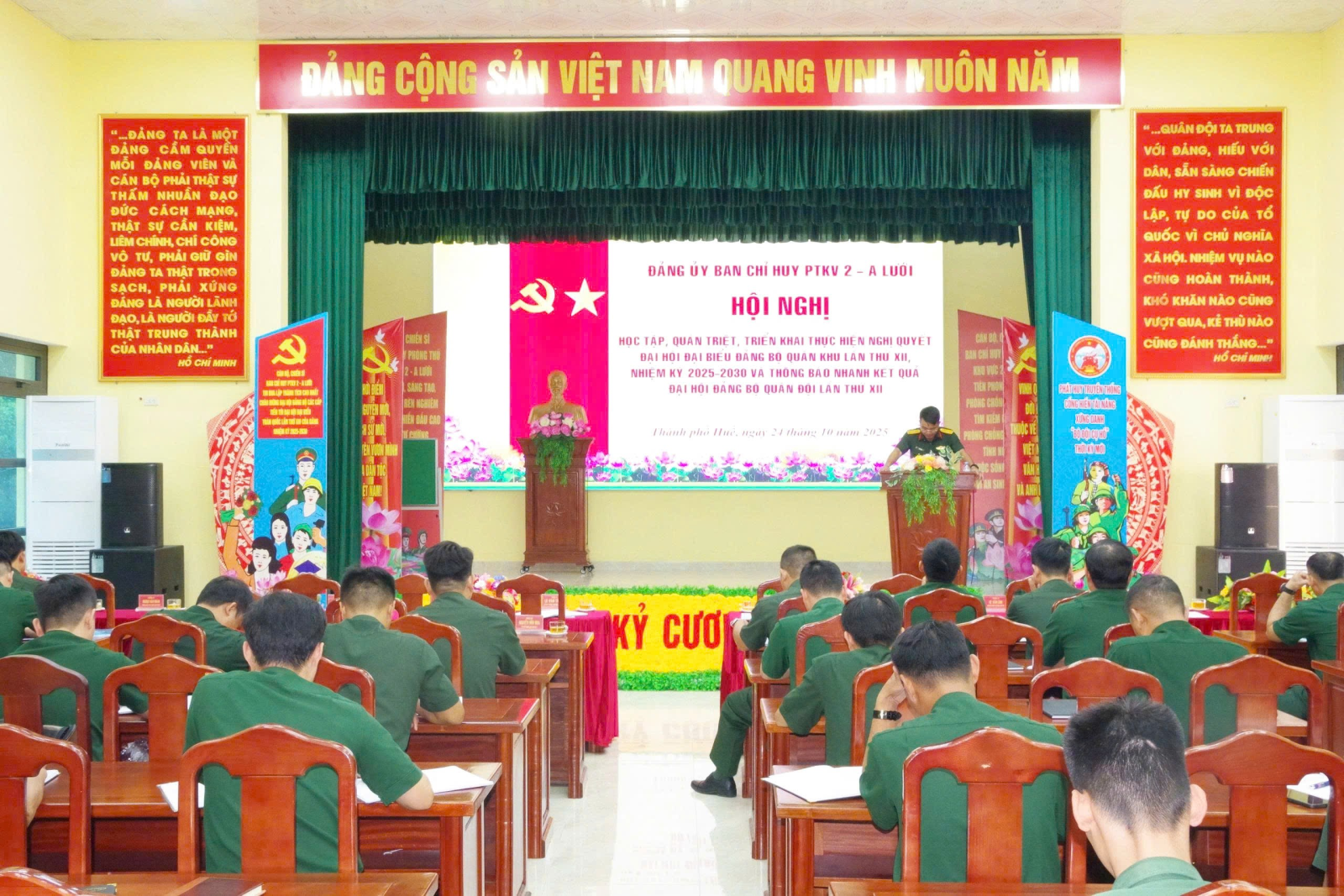Sáng ngày 24 tháng 10 năm 2025, Đảng bộ Ban Chỉ huy PTKV 2 - A Lưới đã tổ chức Hội nghị quán triệt, triển khai thực hiện Nghị quyết Đại hội Đảng bộ Quân khu lần thứ XII và thông báo nhanh kết quả Đại hội Đảng bộ Quân đội lần thứ XII nhiệm kỳ 2025 - 2030. Dự và chủ trì hội nghị có đồng chí Trung tá Ngô Anh Đức - Bí thư Đảng ủy, Chính ủy cùng dự có các đồng trong Thường vụ Đảng ủy và toàn thể cán bộ, đảng viên, SQ, QNCN, chiến sĩ trong toàn đơn vị.