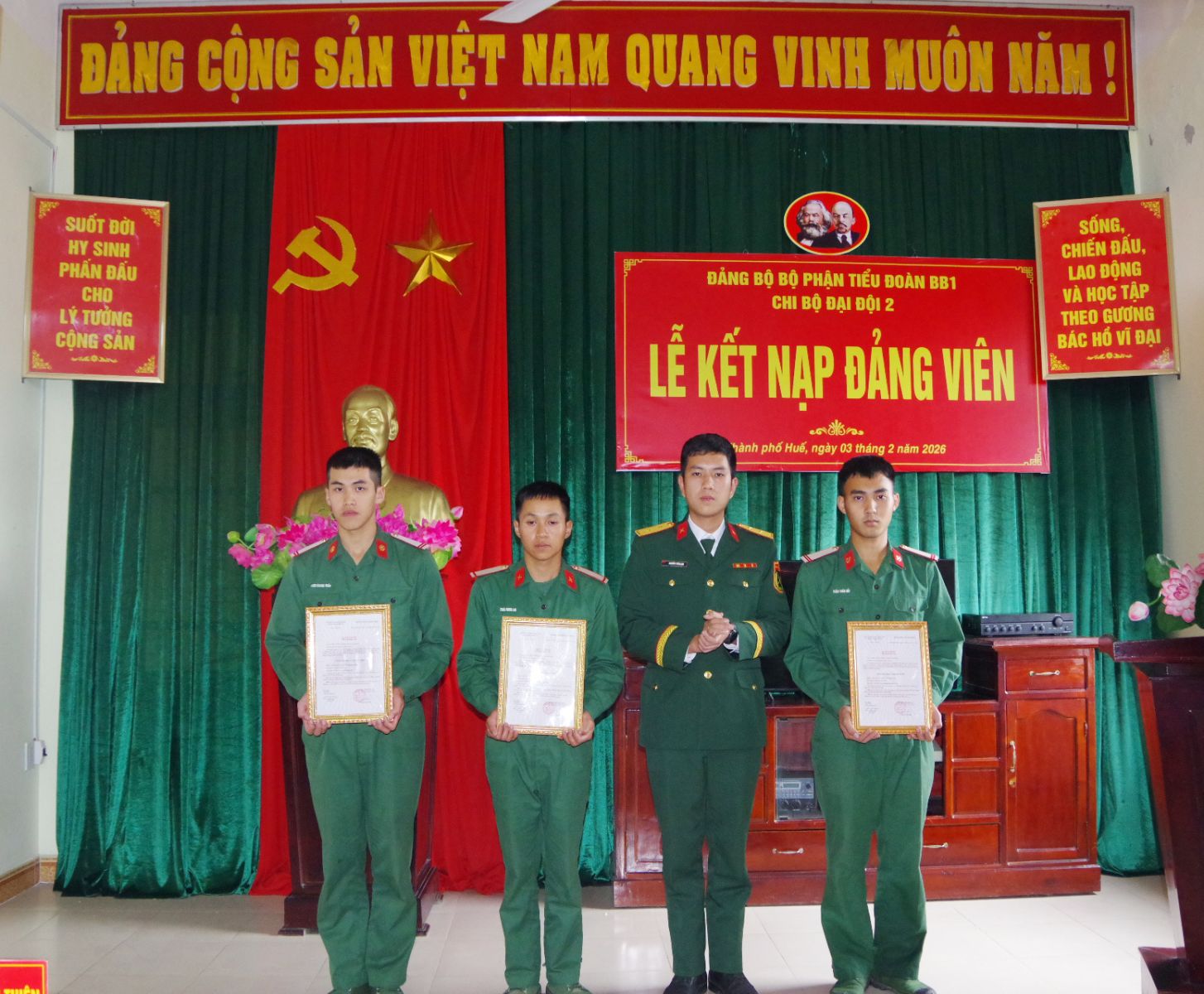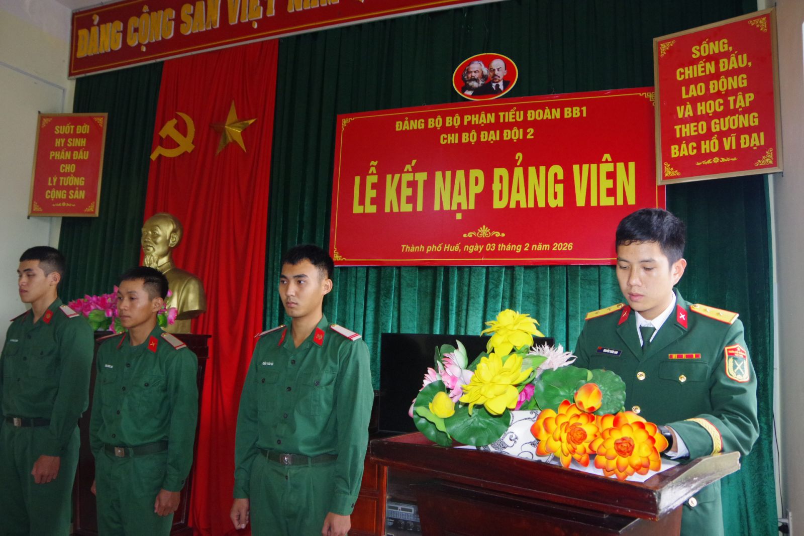Nhân kỷ niệm 96 năm ngày thành lập Đảng cộng sản Việt Nam( 3/02/1930 – 03/02/2026), Chiều ngày 03/02, Chi bộ Đại đội 2 thuộc Đảng bộ bộ phận Tiểu đoàn 1, Trung đoàn 6 tổ chức lễ kết nạp đảng viên mới năm 2026