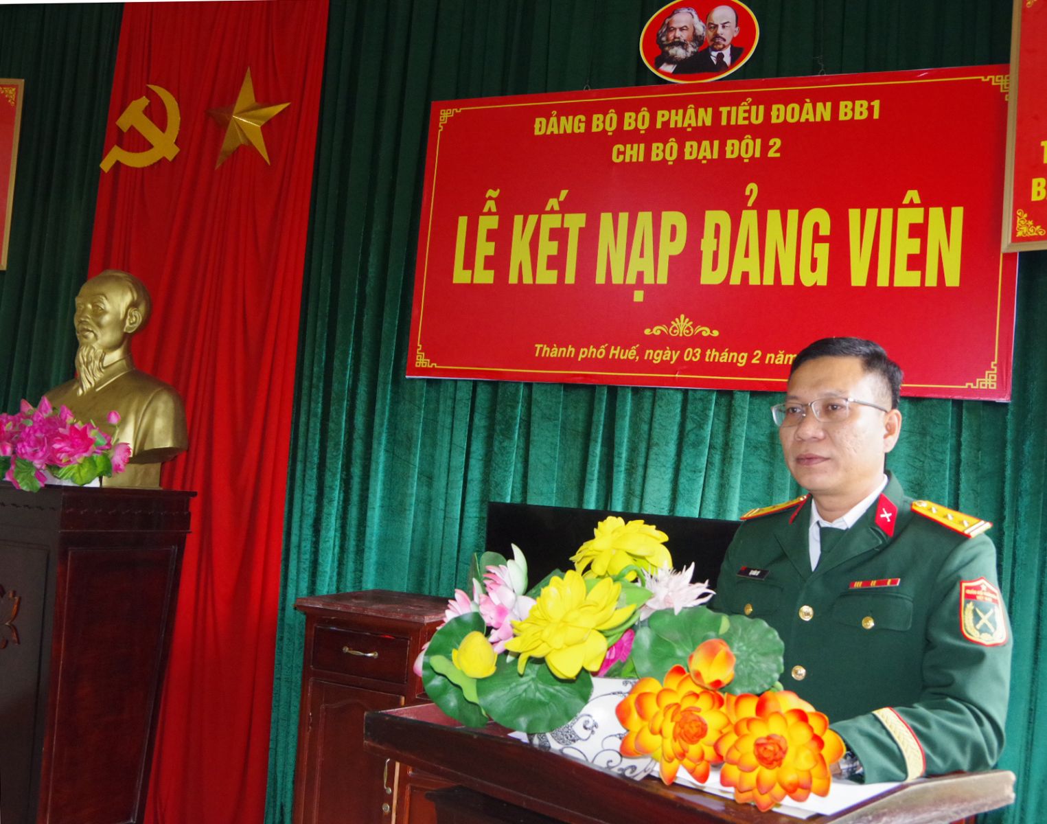 Phát biểu tại buổi lễ, đồng chí Thượng tá Tạ Văn Tú – Bí thư Đảng uỷ, Chính uỷ Trung đoàn đã chúc mừng các đồng chí đảng viên mới đồng thời nhấn mạnh việc được kết nạp vào Đảng là một niềm vinh dự, tự hào của mỗi cán bộ, chiến sĩ vì vậy trong thời gian tới mỗi cá nhân sau khi được kết nạp vào Đảng luôn thể hiện vai trò tiên phong gương mẫu của người Đảng viên, không ngừng nỗ, lực phấn đấu rèn luyện để trở thành những Đảng viên chính thức được đứng trong hàng ngũ của Đảng. Đối với cấp uỷ, chỉ bộ cần kèm cặp và tạo mọi điều kiện thuận lợi nhất để các đảng viên mới hoàn thành xuất sắc mọi nhiệm vụ được giao./.