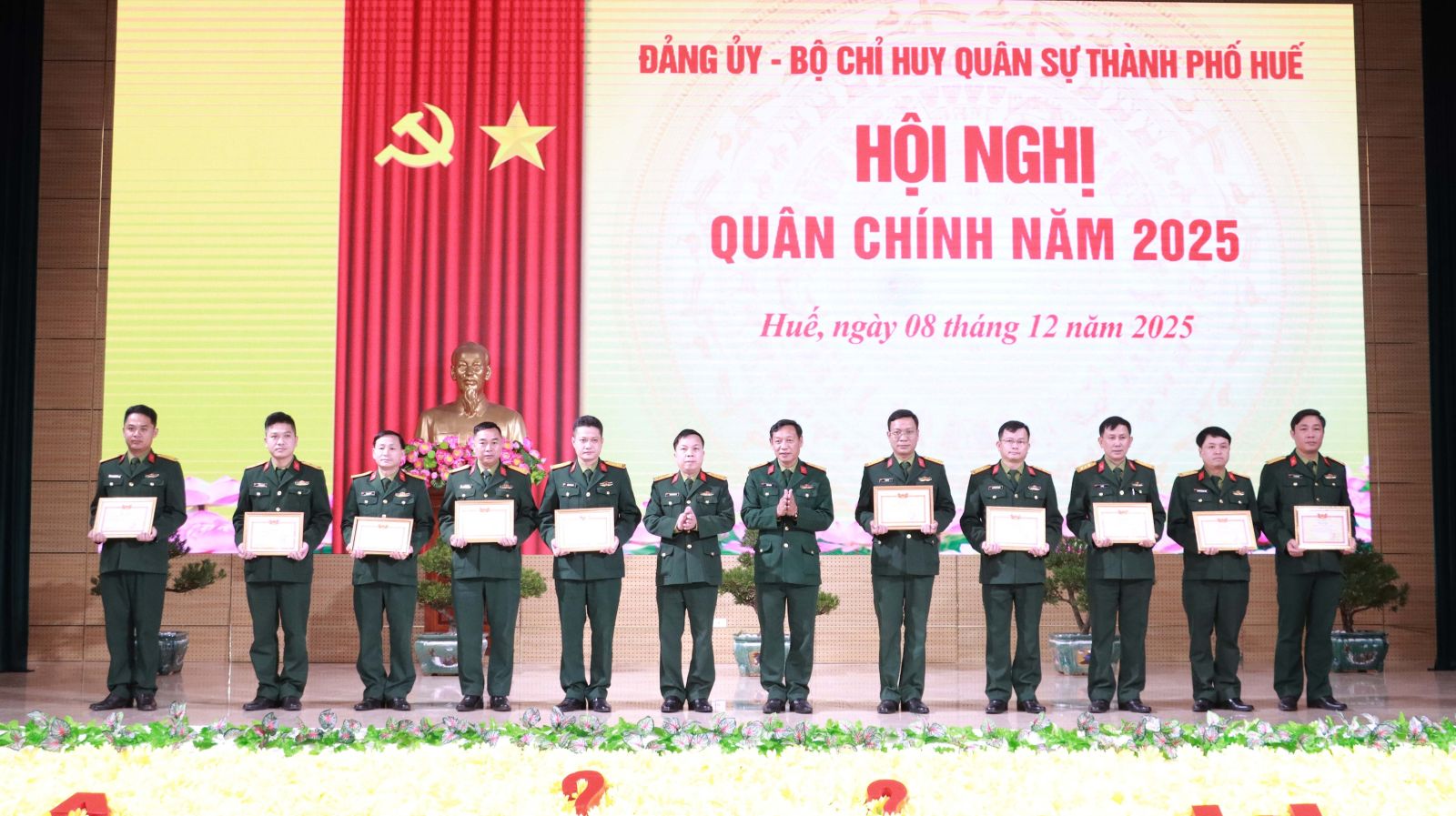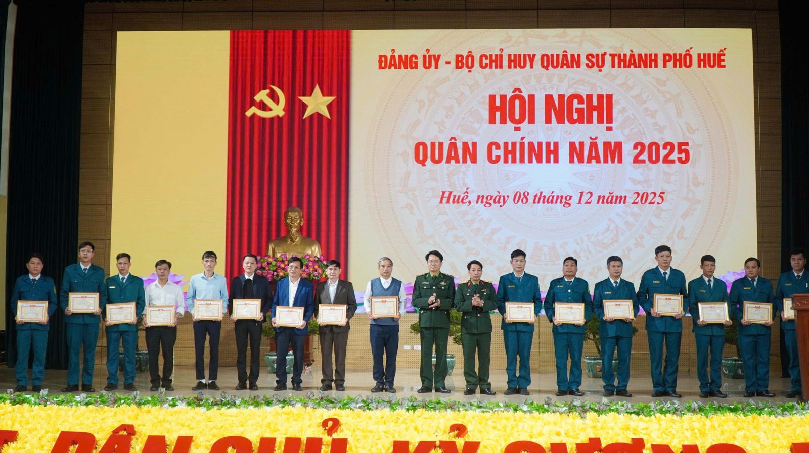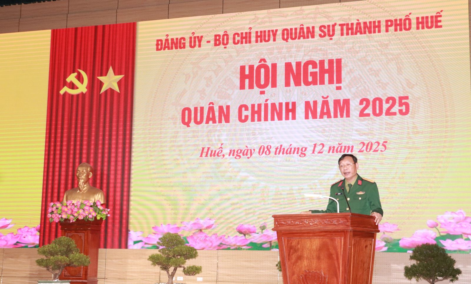 Sáng ngày 8/12, Đảng ủy, Bộ Chỉ huy Quân sự (CHQS) thành phố Huế tổ chức hội nghị Quân chính đánh giá kết quả thực hiện nhiệm vụ quân sự, quốc phòng (QS, QP) năm 2025, phương hướng, nhiệm vụ trọng tâm năm 2026. Đồng chí Trần Hữu Thùy Giang, Thành ủy viên, Phó Chủ tịch UBND thành phố Huế dự chỉ đạo hội nghị. Đại tá Phan Thắng, Ủy viên Ban Thường vụ Thành ủy, Chỉ huy trưởng Bộ CHQS thành phố Huế chủ trì hội nghị, tham dự hội nghị có Đại tá Trương Viết Hải, Thành ủy viên, Chính ủy Bộ CHQS thành phố; đại diện lãnh đạo các ban, sở, ngành; các đồng chí trong Thường vụ Đảng ủy, thủ trưởng Bộ CHQS thành phố và các cơ quan, đơn vị, Ban CHQS các xã, phường
