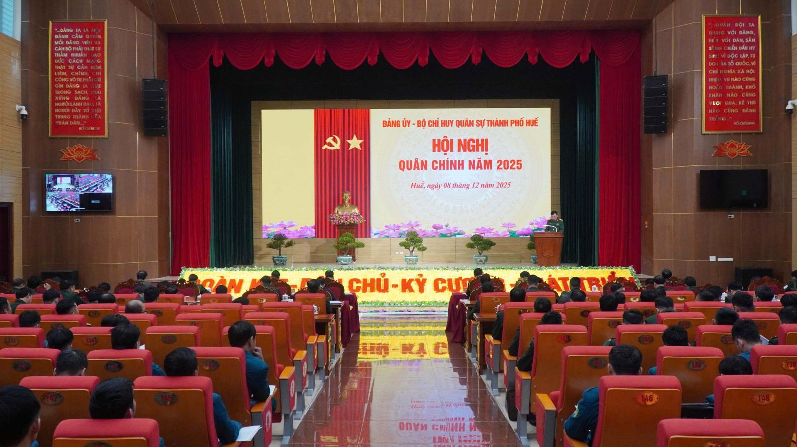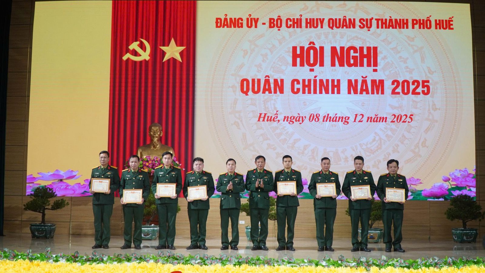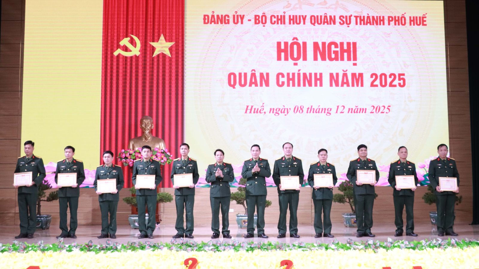 Sáng ngày 8/12, Đảng ủy, Bộ Chỉ huy Quân sự (CHQS) thành phố Huế tổ chức hội nghị Quân chính đánh giá kết quả thực hiện nhiệm vụ quân sự, quốc phòng (QS, QP) năm 2025, phương hướng, nhiệm vụ trọng tâm năm 2026. Đồng chí Trần Hữu Thùy Giang, Thành ủy viên, Phó Chủ tịch UBND thành phố Huế dự chỉ đạo hội nghị. Đại tá Phan Thắng, Ủy viên Ban Thường vụ Thành ủy, Chỉ huy trưởng Bộ CHQS thành phố Huế chủ trì hội nghị, tham dự hội nghị có Đại tá Trương Viết Hải, Thành ủy viên, Chính ủy Bộ CHQS thành phố; đại diện lãnh đạo các ban, sở, ngành; các đồng chí trong Thường vụ Đảng ủy, thủ trưởng Bộ CHQS thành phố và các cơ quan, đơn vị, Ban CHQS các xã, phường