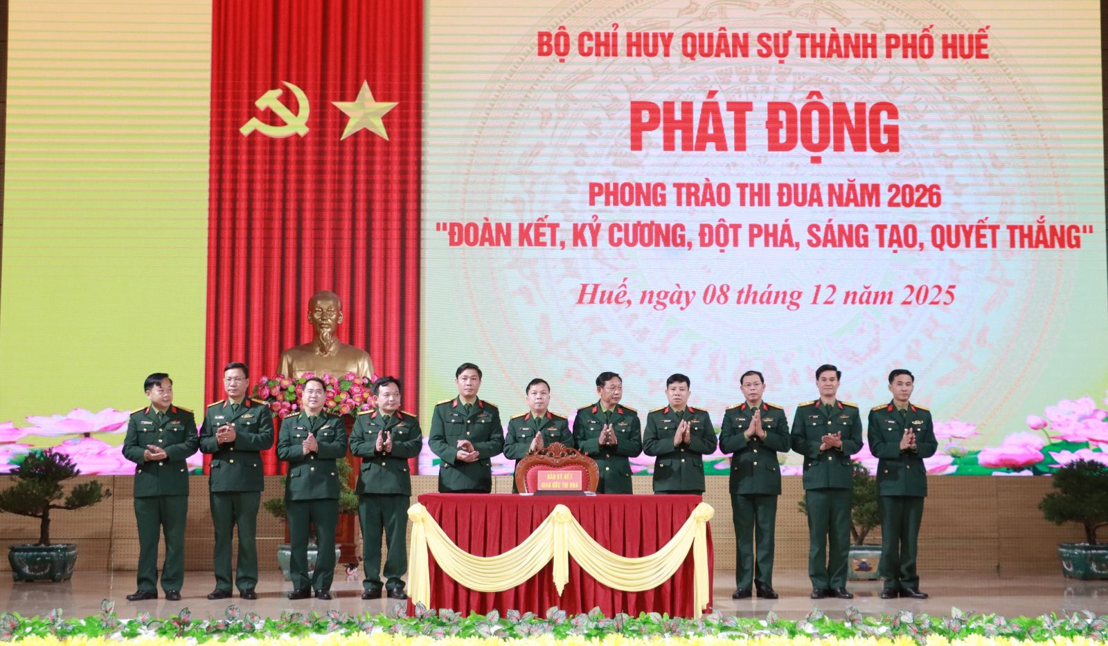Tại hội nghị, Đảng ủy, Bộ CHQS thành phố đã tổng kết Phong trào thi đua Quyết thắng năm 2025 và phát động Phong trào thi đua Quyết thắng năm 2026 với Chủ đề “Đoàn kết, kỷ cương, đột phá, sáng tạo, quyết thắng”, tổ chức kí kết giao ước thi đua. Dịp này, Bộ CHQS thành phố đã trao khen thưởng tặng các tập thể, cá nhân đạt thành tích xuất sắc trong thực hiện nhiệm vụ năm 2025./.