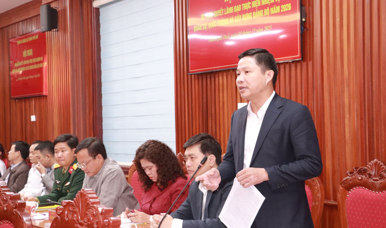 Phát biểu chỉ đạo hội nghị, Trung tướng Hà Thọ Bình, Phó Bí thư Đảng ủy, Tư lệnh Quân khu biểu dương kết quả đạt được trong năm 2025, đồng thời đề nghị Đảng uỷ Quân sự thành phố tập trung triển khai nghiêm túc các nghị quyết, chỉ thị của cấp trên; bám sát mục tiêu, chỉ tiêu, khâu đột phá mà Nghị quyết Đại hội Đảng bộ Quân khu đã xác định. Trung tướng Hà Thọ Bình đề nghị lãnh đạo thành phố quan tâm quy hoạch, bố trí trụ sở Ban CHQS cấp xã; quy hoạch đất quốc phòng phục vụ xây dựng doanh trại; hoàn thiện Đề án tổ chức tiểu đội dân quân thường trực tại các xã, phường.
