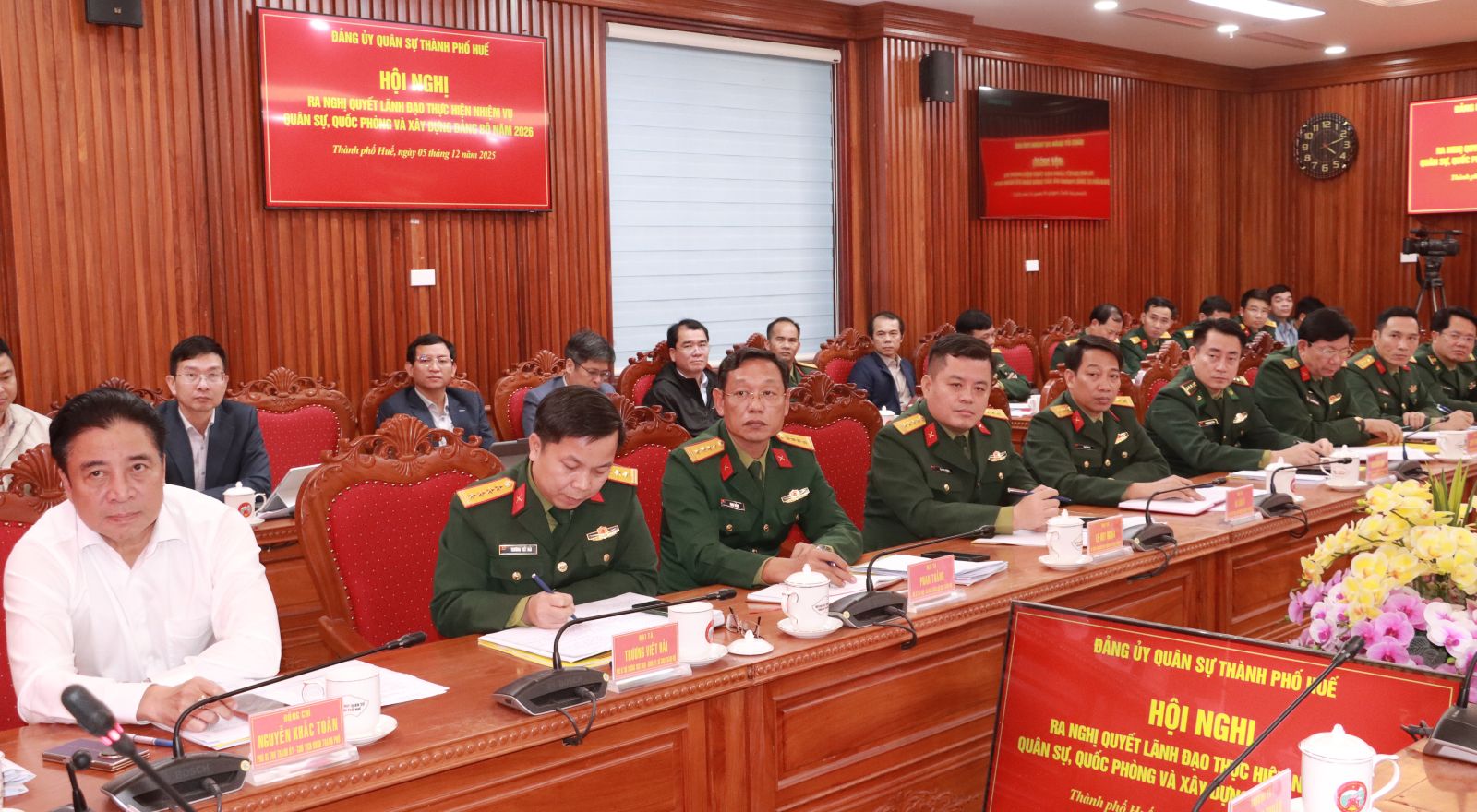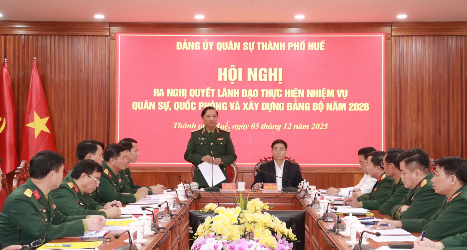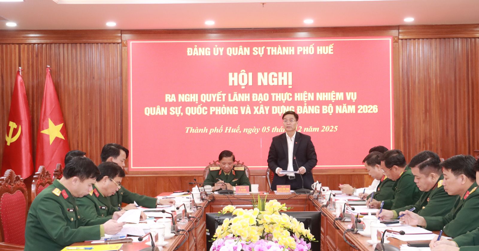 Kết luận hội nghị, đồng chí Nguyễn Đình Trung, Ủy viên Trung ương Đảng, Bí thư Thành uỷ, Bí thư Đảng uỷ Quân sự thành phố ghi nhận và biểu dương nỗ lực của Đảng uỷ, Bộ CHQS thành phố, đồng chí nhấn mạnh LLVT thành phố đã thể hiện vai trò nòng cốt trong phòng chống thiên tai, bảo vệ nhân dân, giữ vững an ninh chính trị, trật tự an toàn xã hội. Bí thư Thành uỷ yêu cầu Đảng ủy, Bộ CHQS thành phố tiếp tục nâng cao chất lượng công tác xây dựng Đảng bộ, phát huy tinh thần đoàn kết, chủ động, sáng tạo, khắc phục khó khăn; triển khai quyết liệt các mục tiêu, nhiệm vụ của Nghị quyết năm 2026, luôn nêu cao tinh thần trách nhiệm, sâu sát, chủ động tham mưu hiệu quả cho cấp uỷ, chính quyền, quyết tâm hoàn thành thắng lợi nhiệm vụ quân sự – quốc phòng năm 2026, góp phần xây dựng thành phố Huế an toàn, bình yên và phát triển bền vững.