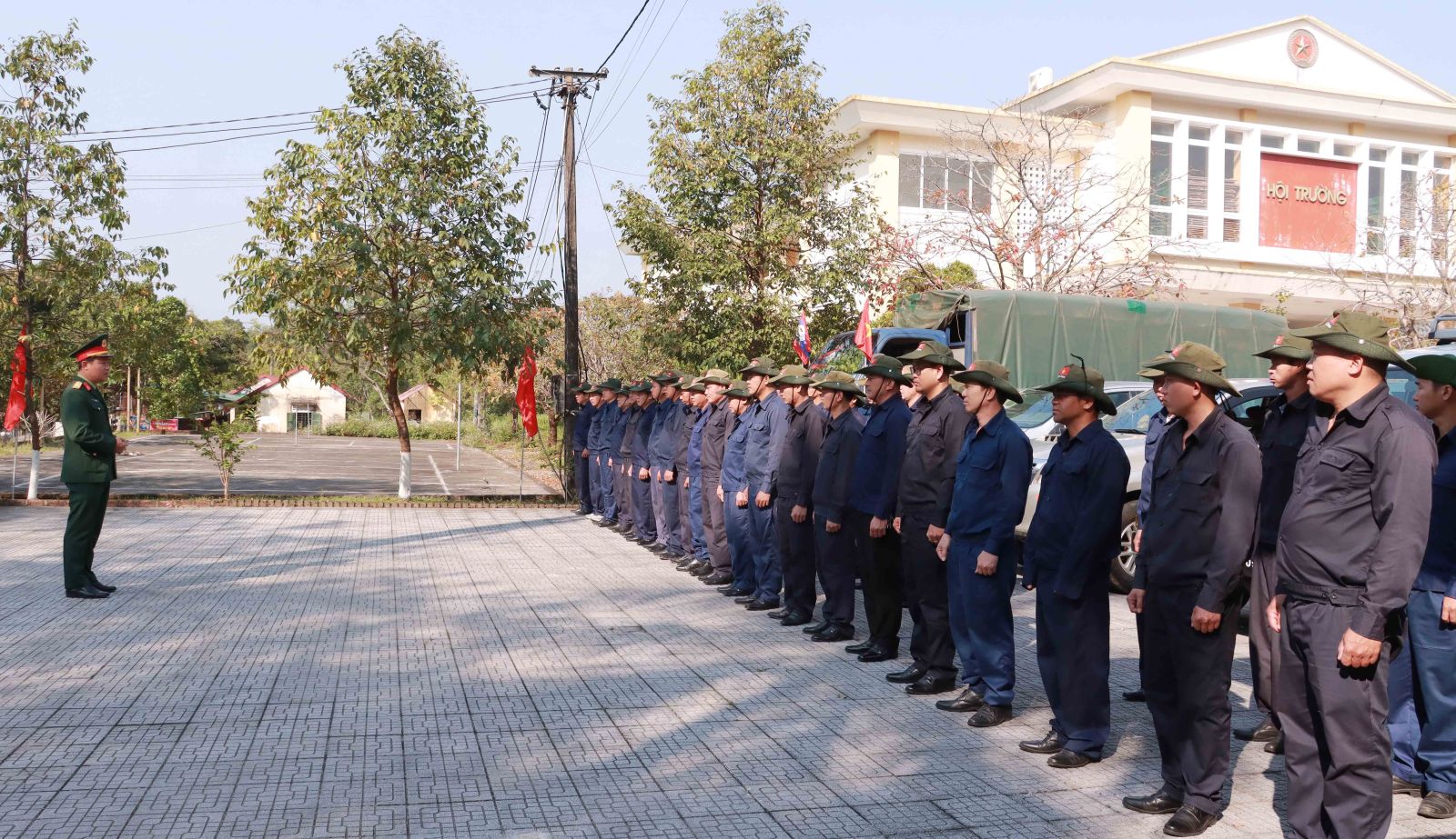 Thượng tá Lê Văn Lĩnh - Chủ nhiệm chính trị Bộ CHQS thành phố quán triệt trước khi Đội 192 lên đường làm nhiệm vụ tại Lào