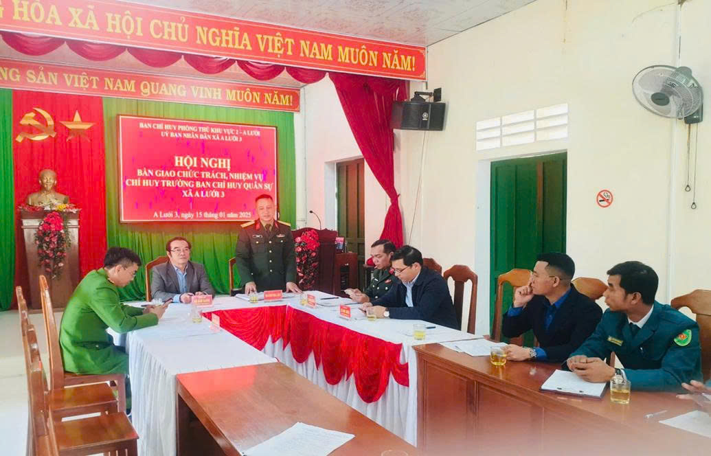 Thừa ủy quyền của Bộ CHQS Thành phố; trong 2 ngày 14 và 15/1, Ban Chỉ huy Phòng thủ khu vực 2 – A Lưới đã phối hợp với chính quyền các địa phương tổ chức Hội nghị bàn giao chức trách, nhiệm vụ Chỉ huy trưởng Ban Chỉ huy Quân sự (CHQS) các xã, phường thuộc Ban Chỉ huy phòng thủ khu vực 2 - A Lưới.