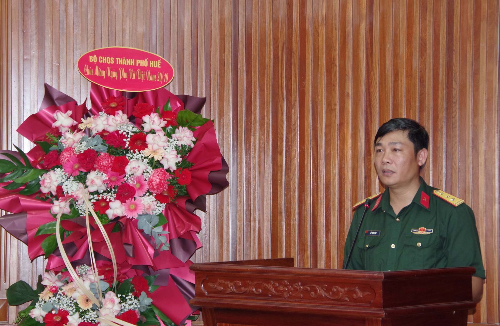 Phát biểu tại buổi gặp mặt, thừa uỷ quyền của Bộ CHQS thành phố Thượng tá Lê Văn Lĩnh - Chủ nhiệm chính trị đã thành phố biểu dương những kết quả, thành tích nổi bật của Hội phụ nữ cơ quan trong thời gian qua. Chị em đã tích cực học tập, rèn luyện, nêu cao tinh thần trách nhiệm, hoàn thành tốt nhiệm vụ được giao, đồng thời luôn là đóng vai trò quan trọng giữ lửa và hậu phương vững chắc trong mỗi gia đình. Đồng chí Chủ nhiệm chính trị đề nghị trong thời gian tới Hội phụ nữ và từng thành viên cần tiếp tục phát huy truyền thống: "Anh hùng - Bất khuất - Trung hậu - Đảm đang" và phẩm chất cao đẹp của "Người phụ nữ Bộ đội Cụ Hồ - Trung hậu, tự tin, năng động, sáng tạo" trong thời kỳ mới để tiếp tục cống hiến để góp phần xây dựng Lực lượng vũ trang thành phố ngày càng phát triển. Dịp này đồng chí thay mặt Bộ CHQS thành phố gửi lời chúc tốt đẹp nhất đến tất cả các chị em nhân dịp ngày 20/10.