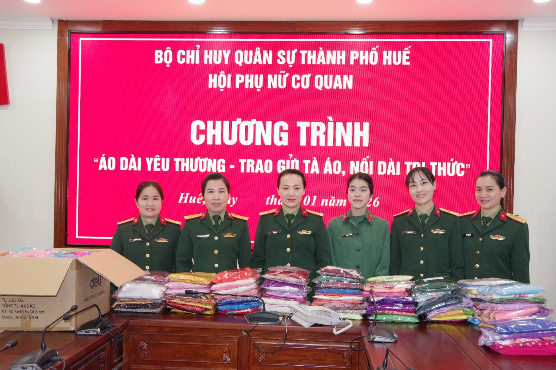 Hội phụ nữ cơ quan Bộ CHQS thành phố Huế tặng hơn 200 bộ áo dài cho giáo viên vùng lũ Miền Tây Nghệ An