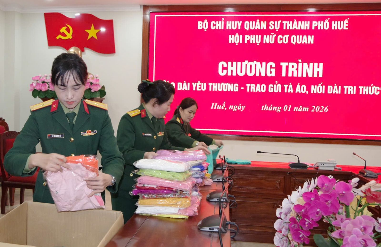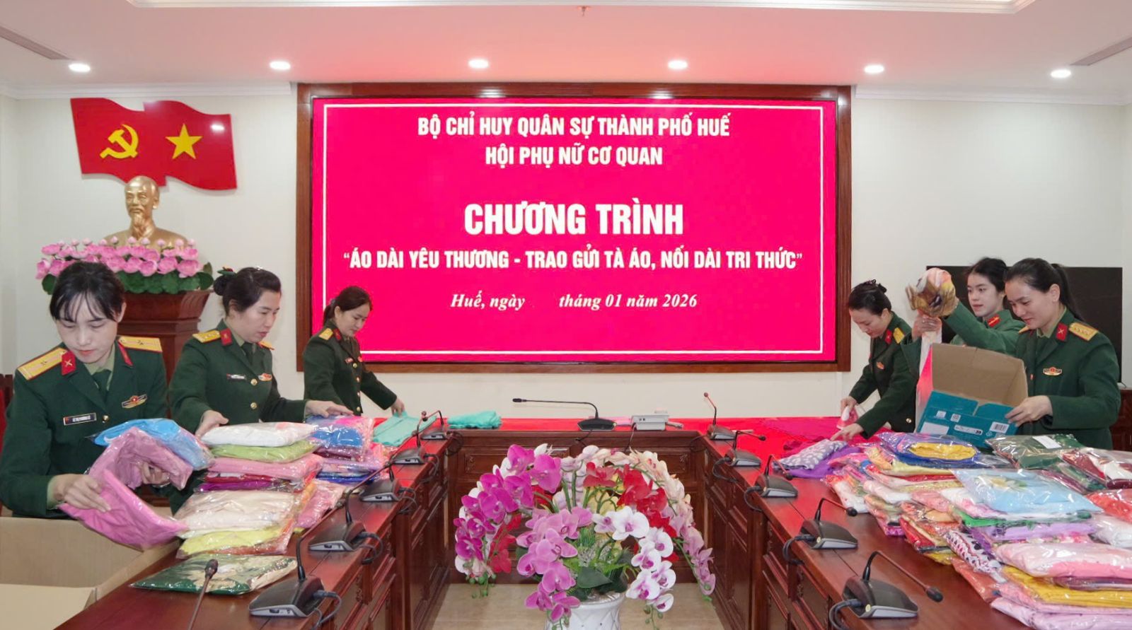 Nhằm chia sẻ kịp thời những khó khăn với các giáo viên đang ngày đêm "cắm bản" tại các trường vùng cao miền Tây tỉnh Nghệ An, thời gian qua, Hội Phụ nữ Bộ CHQS thành phố Huế đã phát động chương trình “Áo dài yêu thương - Trao gửi tà áo, nối dài tri thức”. Chương trình hướng đến việc trao tặng những tà áo dài cho các cô giáo ở vùng bị thiệt hại do đợt lũ vừa qua tại miền Tây Nghệ An.
