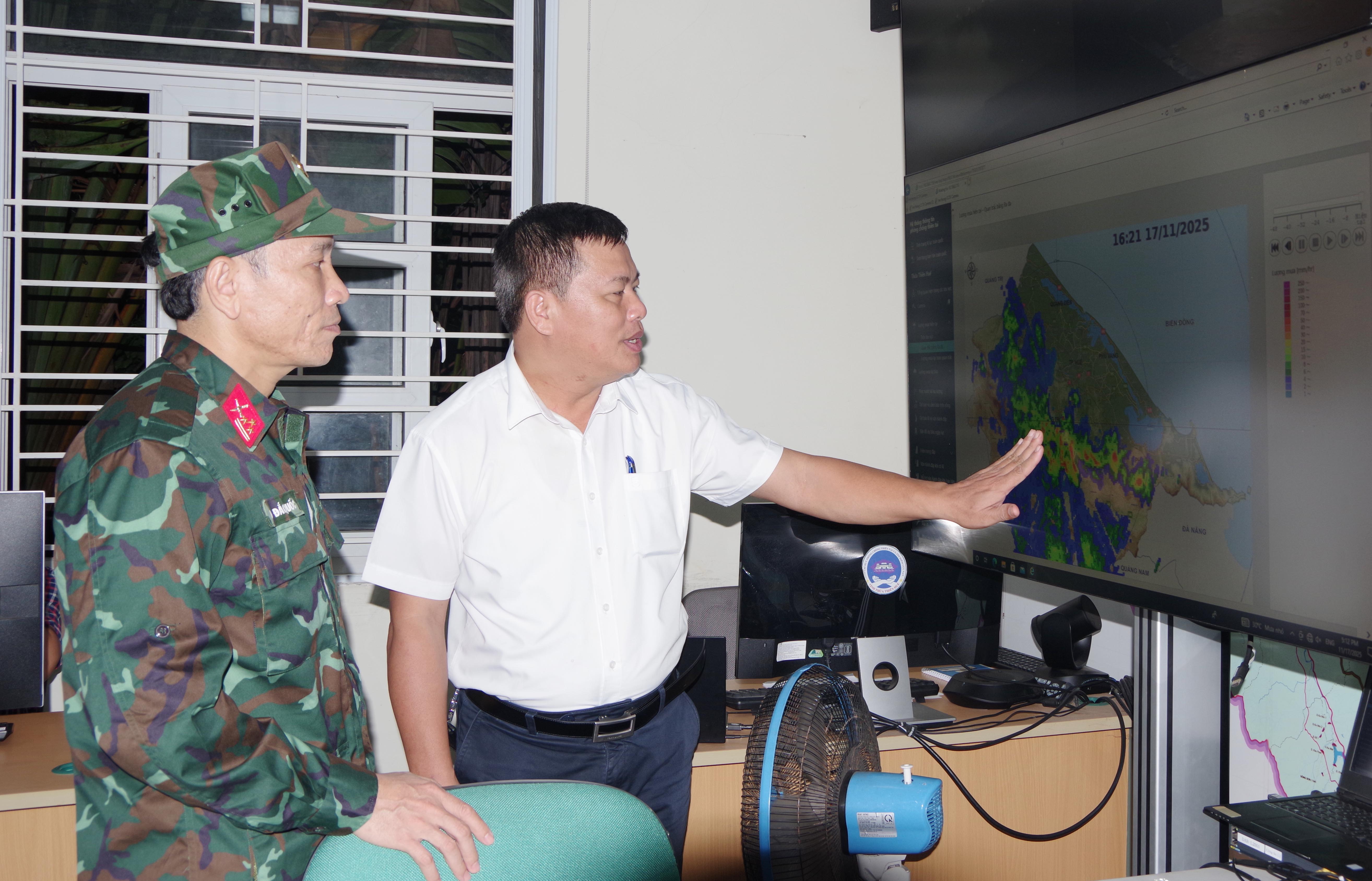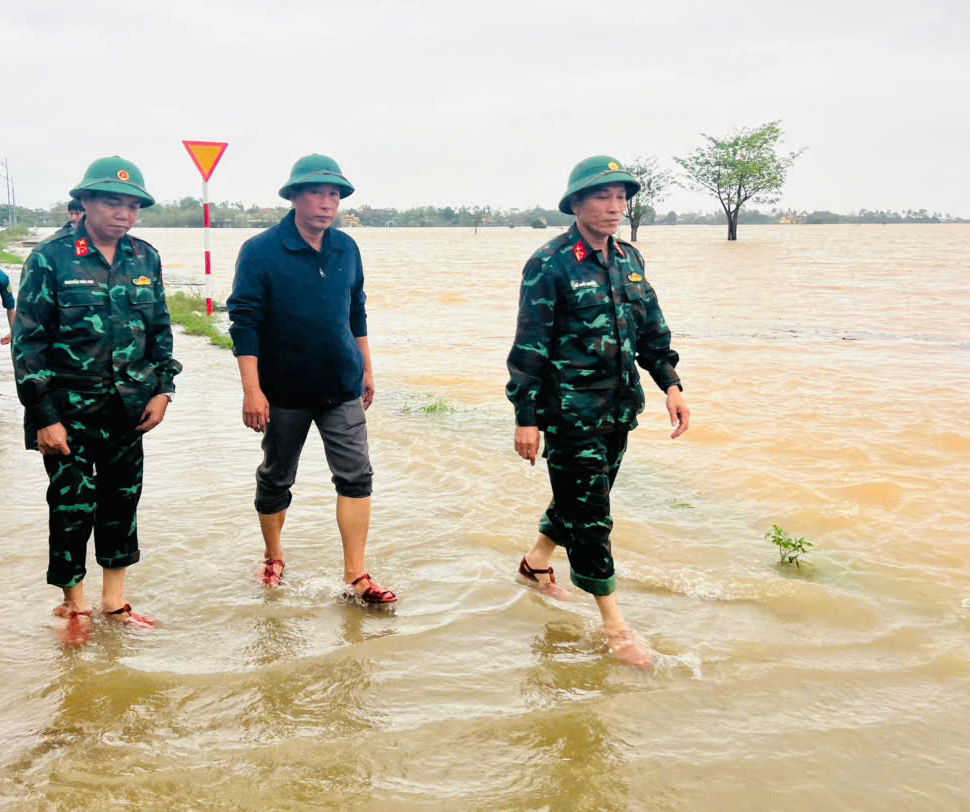 Trước diễn biến phức tạp của mưa lũ ngay trong chiều tối 17.11, Đoàn công tác Bộ CHQS thành phố do Thượng tá Hồ Đắc Quốc – Phó Chỉ huy trưởng Bộ CHQS thành phố làm trưởng đoàn đã tiến hành kiểm tra, chỉ đạo công tác ứng phó tại xã Quảng Điền, qua kiểm tra đồng chí Phó Chỉ huy trưởng Bộ CHQS thành phố đã yêu cầu Ban chỉ huy quân sự xã nhanh chóng rà soát lại các khu vực có nguy cơ bị ngập sâu, chia cắt để có phương án di dời bà con ngay trong đêm đến nơi an toàn, đồng thời chuẩn bị lực lượng, phương tiện để sẵn sàng ứng cứu khi có tình huống xảy ra.