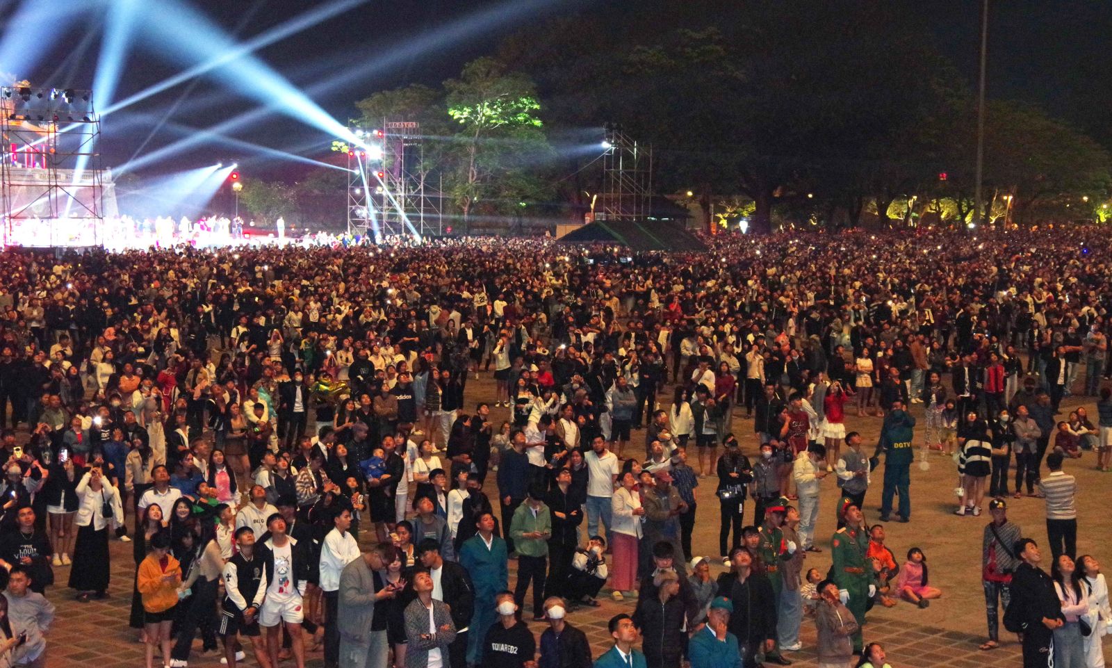 Đúng 0 giờ 0 phút, những màn pháo hoa đẹp lung linh với đa chủng sắc màu đã đồng loạt được phóng lên bầu trời Thành phố Huế. Những màn pháo hoa cũng đã đánh dấu thời khắc giao thừa giữa năm Ất Tỵ và năm Bính Ngọ, đánh dấu một trang sử mới khi đất nước đang bước vào kỷ nguyên vươn mình của dân tộc và Thành phố Huế với vị thế là Thành phố trực thuộc Trung ương.