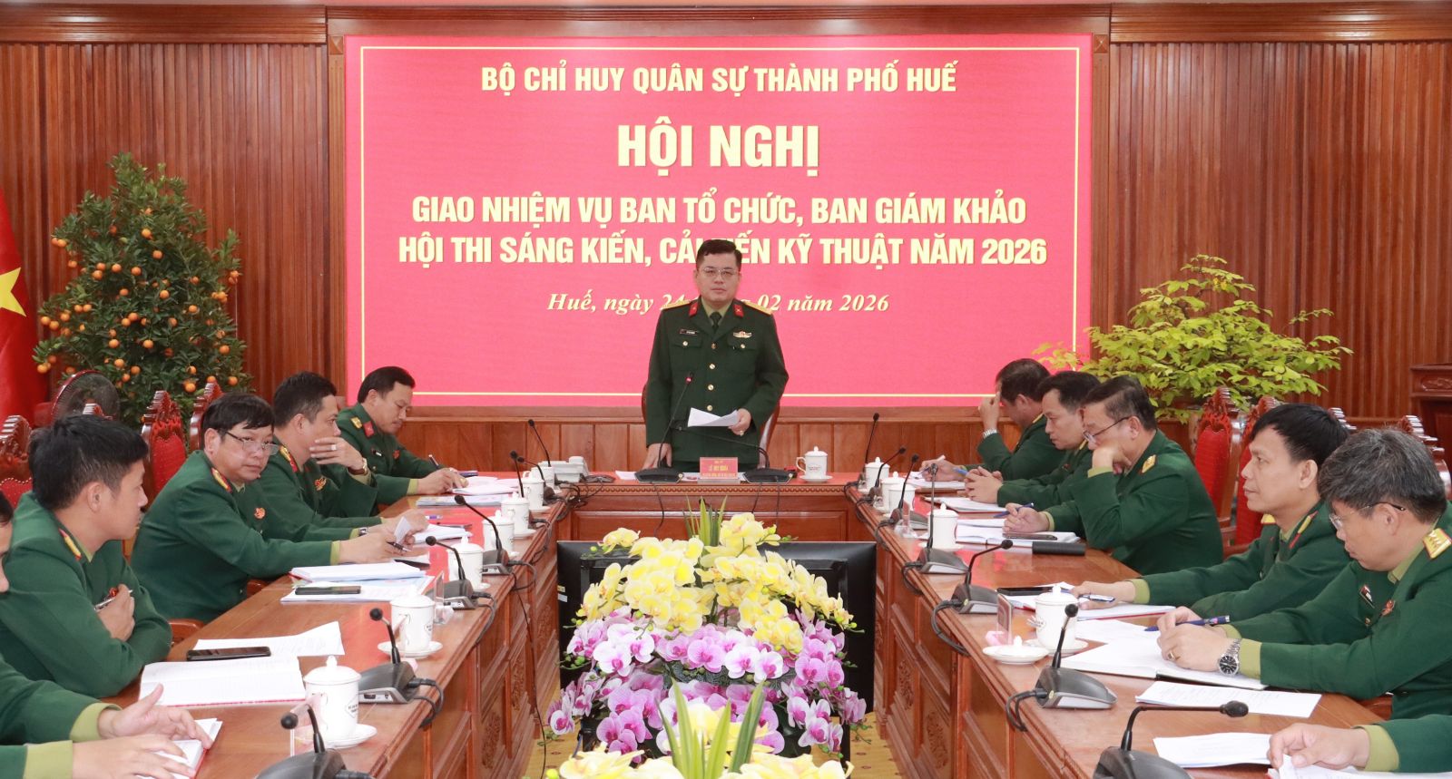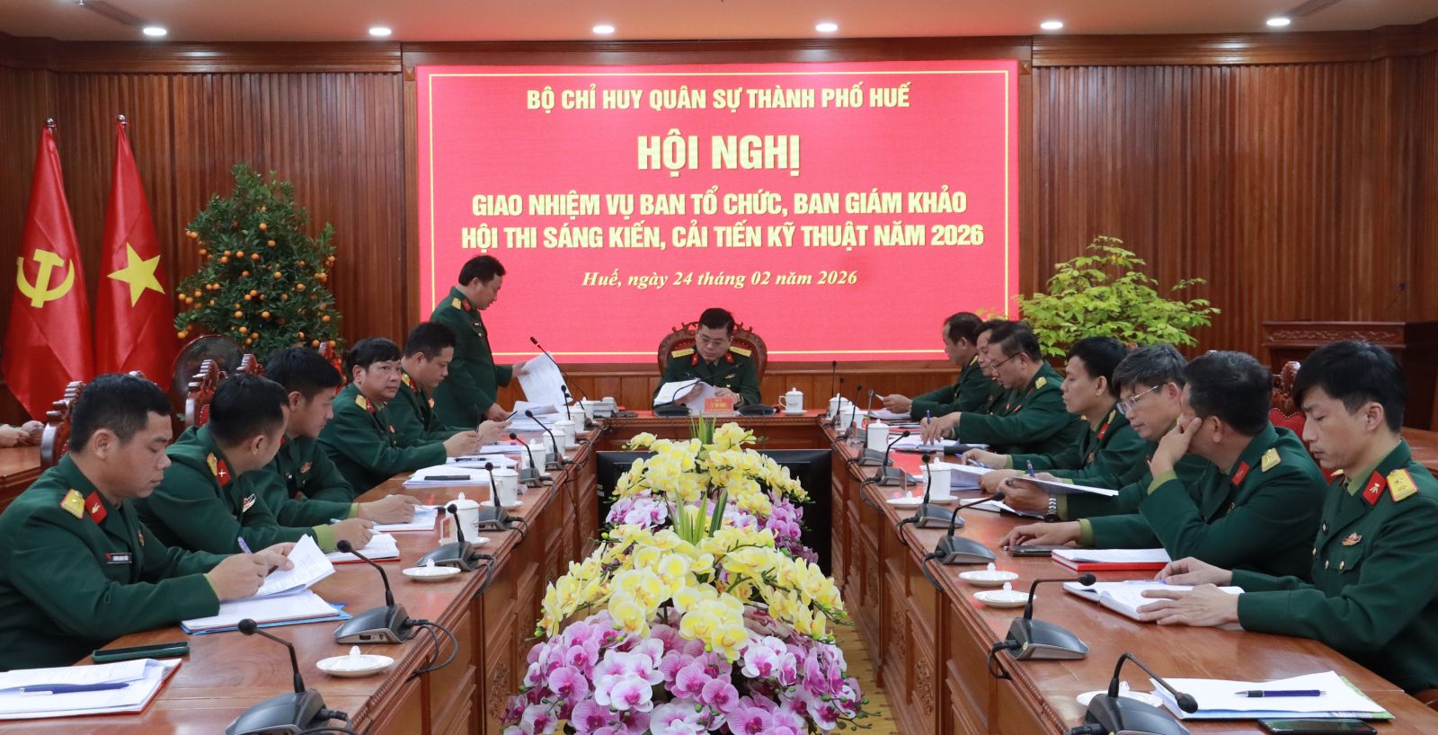 Ngày 24/02, Bộ Chỉ huy Quân sự (CHQS) thành phố tổ chức Hội nghị giao nhiệm vụ Ban tổ chức, Ban Giám khảo hội thi sáng kiến, cải tiến kỹ thuật năm 2026. Đại tá Lê Huy Nghĩa, Uỷ viên Ban Thường vụ Đảng ủy, Phó Chỉ huy trưởng, Tham mưu trưởng Bộ CHQS thành phố chủ trì Hội nghị.