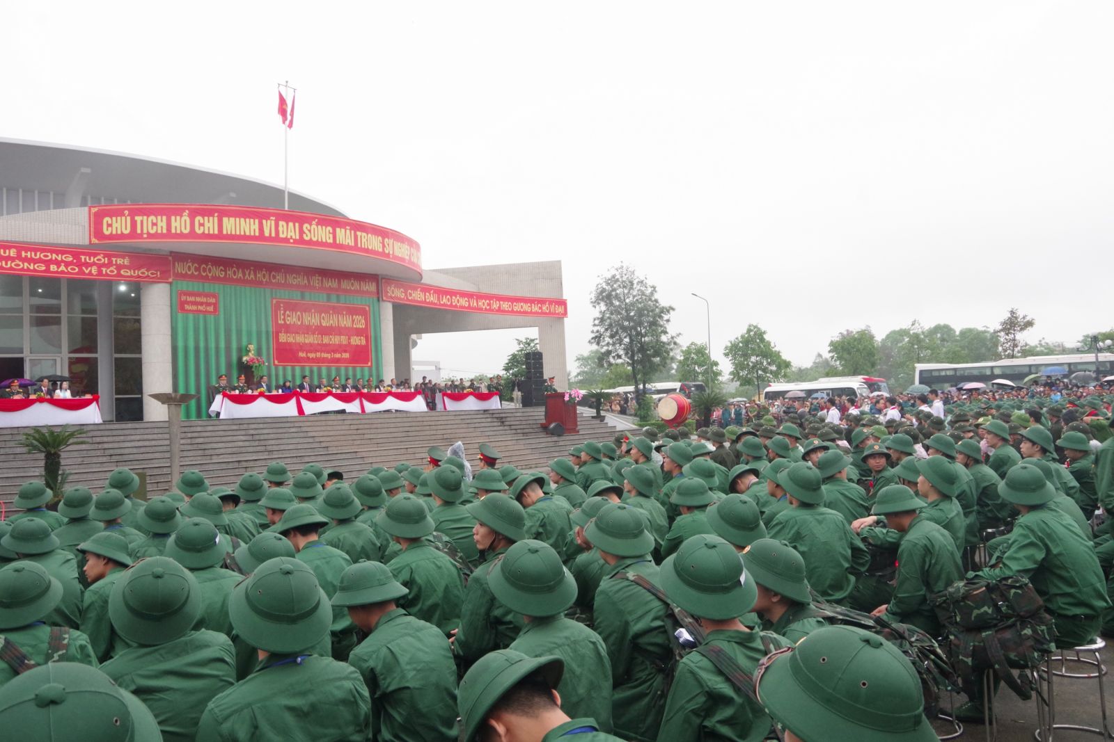 Năm 2026, thành phố Huế tổ chức Lễ giao nhận quân tại 05 điểm, các đơn vị nhận quân gồm: Tổng Cục kỹ thuật – Bộ quốc phòng; Sư đoàn 324; Lữ đoàn 16; Lữ đoàn 414; Lữ đoàn 80 thuộc Quân khu 4; Bộ Chỉ huy quân sự thành phố và Ban chỉ huy Bộ đội Biên phòng. Là năm đầu tiên thực hiện tuyển quân, giao quân theo mô hình chính quyền địa phương 02 cấp, quá trình khám tuyển mặc dù gặp rất nhiều khó khăn, nhất là số lượng lớn thanh niên đang đi làm ăn xa song với sự vào cuộc của cả hệ thống chính trị, do đó công tác sơ khám và khám tuyển được Hội đồng nghĩa vụ quân sự các cấp triển khai một cách nghiêm túc, đúng luật bảo đảm tính công khai, minh bạch. Chất lượng thanh niên nhập ngũ năm nay cũng được tăng lên rõ rệt. Độ tuổi thanh niên từ 18 - 21 đạt 68,6%; sức khoẻ loại I, II đạt 75,9%; 199 thanh niên có trình độ Đại học, Cao đẳng và Trung cấp, 14 thanh niên là Đảng viên, hơn 800 thành niên viết đơn tình nguyện lên đường nhập ngũ. Trước khi lên đường nhập ngũ các địa phương cũng đã tổ chức nhiều hoạt động ý nghĩa và trao tặng quà, sổ tiết kiệm động viên các thanh niên lên đường nhập ngũ.