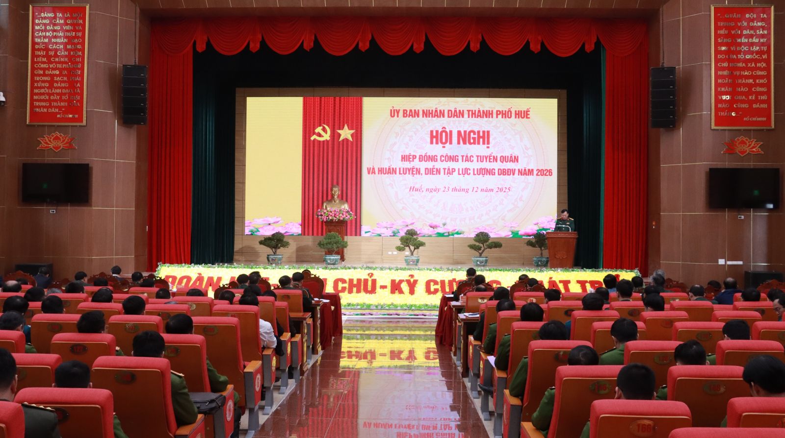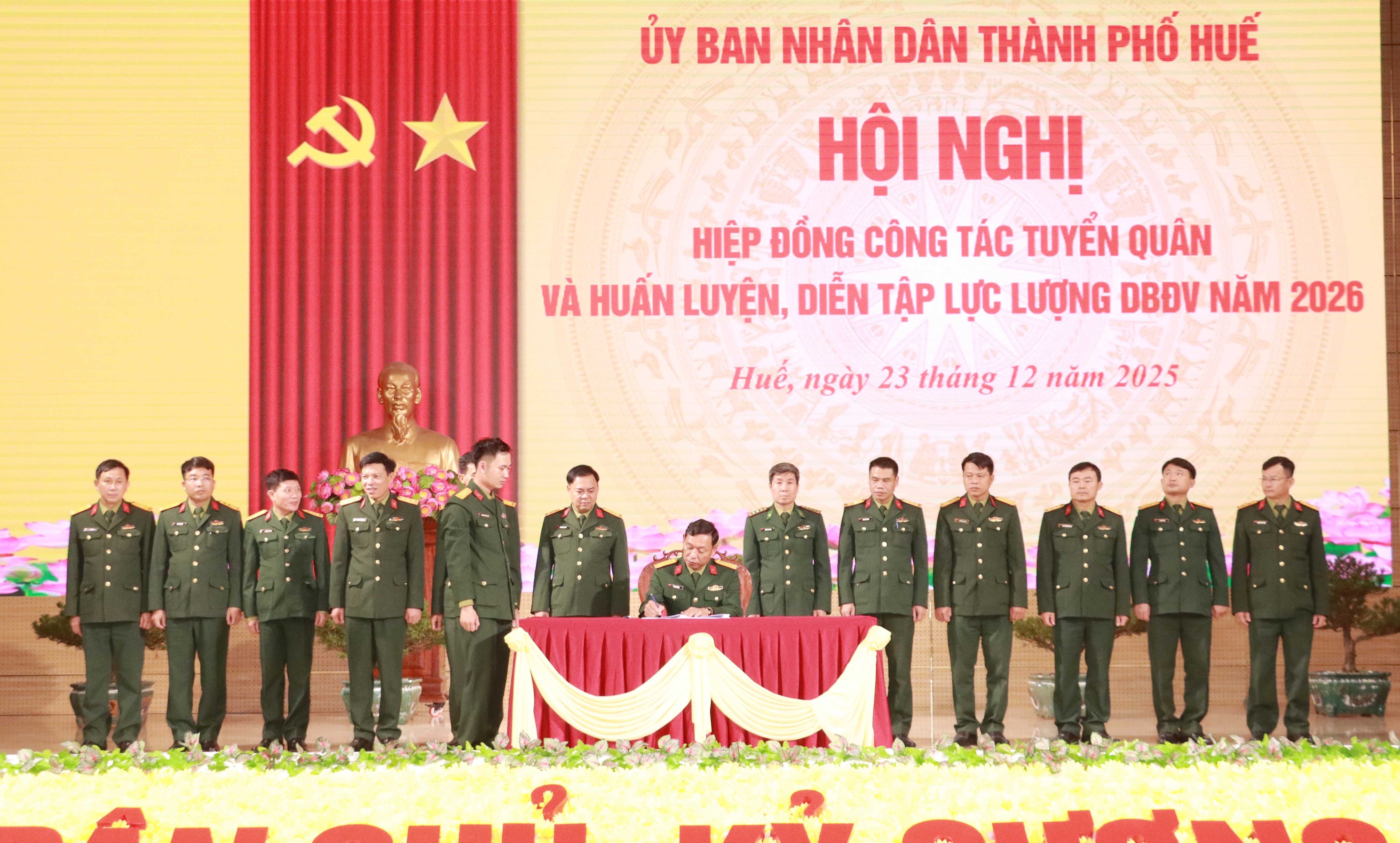 Ngày 23/12, Ủy ban nhân dân thành phố Huế tổ chức hội nghị hiệp đồng công tác tuyển quân và huấn luyện, diễn tập lực lượng dự bị động viên năm 2026. Đại tá Phan Thắng, Chỉ huy trưởng Bộ Chỉ huy Quân sự (CHQS) thành phố chủ trì hội nghị. Dự hội nghị có Đại tá Lê Nguyên Dũng, Trưởng Phòng Quân lực, Bộ Tham mưu Quân khu 4; thành viên Hội đồng Nghĩa vụ quân sự (NVQS) thành phố Huế, đại biểu các đơn vị nhận quân và đơn vị nhận nguồn huấn luyện dự bị động viên (DBĐV).