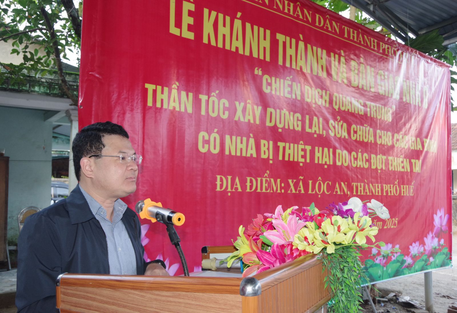 Phát biểu tại buổi lễ, Phó Chủ tịch Uỷ ban nhân dân thành phố Huế Hoàng Hải Minh chúc mừng các gia đình được hỗ trợ nhà ở, mong bà con yên tâm an cư, đón mùa xuân mới an vui, đầm ấm; đồng thời mong muốn các hộ gia đình tiếp tục phát huy ý chí tự lực, vươn lên lao động, sản xuất, ổn định cuộc sống. Ông Hoàng Hải Minh cũng biểu dương, ghi nhận sự nỗ lực của các lực lượng, đơn vị liên quan đã nỗ lực không mệt mỏi; sự chung tay hỗ trợ của các doanh nghiệp, nhà hảo tâm tạo nên nguồn lực quý báu, là những "viên gạch hồng" xây đắp nên niềm tin và hy vọng cho người dân trong lúc gian nan nhất.