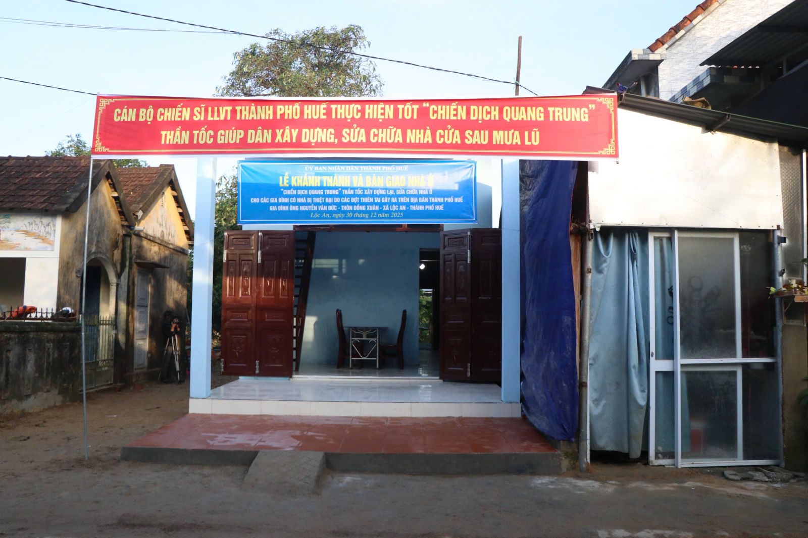 Thực hiện Công điện của Thủ tướng Chính phủ về phát động, triển khai “Chiến dịch Quang Trung” thần tốc xây dựng lại, sửa chữa nhà ở cho các gia đình có nhà bị thiệt hại do các đợt thiên tai vừa qua tại các tỉnh miền Trung. Với tinh thần “Thần tốc - Táo bạo - Hiệu quả” UBND thành phố Huế đã tập trung chỉ đạo huy động nhân lực, phương tiện không quản điều kiện thời tiết, gấp rút chạy đua với thời gian để xây dựng mới và sửa chữa nhà bị hư hỏng cho bà con, mang lại mái ấm an cư cho đồng bào trong mùa mưa bão để bà con kịp đón một cái “Tết đoàn viên” trong ngôi nhà mới. Sau 25 ngày xây dựng, căn nhà mới của ông Nguyễn Văn Đức được bàn giao với diện tích 64m2 gồm: 01 phòng thờ, 2 phòng ngủ, 01 phòng khách, phòng bếp và có gác lửng kiên cố phù hợp điều kiện thời tiết khắc nghiệt và địa hình, bảo đảm an toàn, bền vững lâu dài cho gia đình.