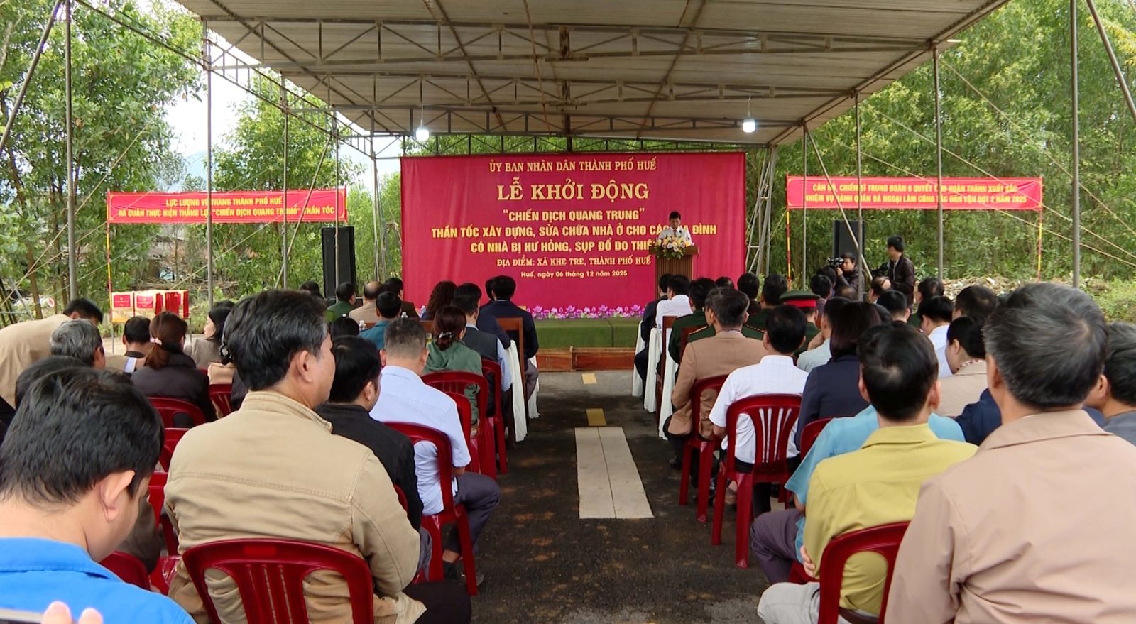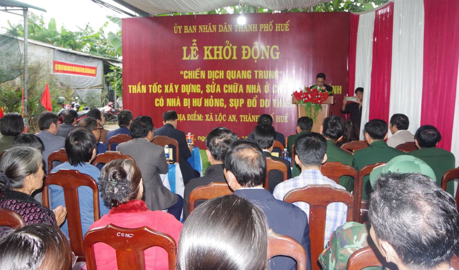 Sáng ngày 6/12, tại xã Khe Tre và xã Lộc An, UBND thành phố đồng loạt tổ chức Lễ khởi động “Chiến dịch Quang Trung” thần tốc xây dựng, sửa chửa nhà ở cho các gia đình có nhà bị hư hỏng, sụp đổ do thiên tai. Tham dự có đồng chí Nguyễn Đình Trung, UVTW Đảng, Bí thư Thành ủy, đồng chí Hoàng Hải Minh, Phó Chủ tịch UBND thành phố, Nguyễn Thị Ái Vân, Phó Chủ tịch Thường trực Ủy ban MTTQ Việt Nam thành phố, Đại tá Trương Viết Hải, Chính ủy Bộ Chỉ huy Quân sự (CHQS) thành phố, Đại tá Hà Văn Ái, Phó Chính ủy Bộ CHQS thành phố, đại biểu cấp ủy chính quyền các địa phương và Nhân dân.