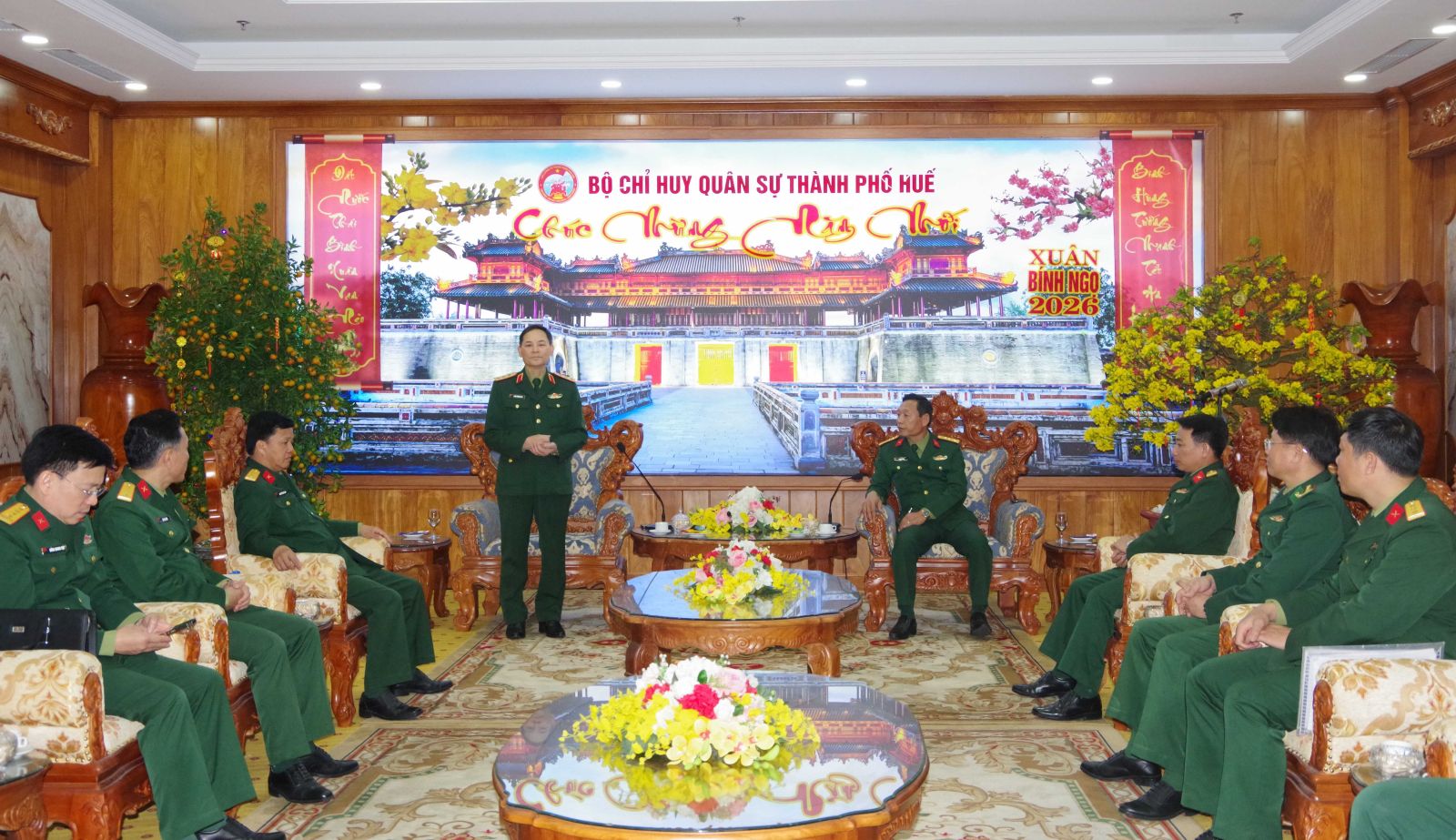 Đồng chí Phó Tổng tham mưu trưởng cũng yêu cầu Bộ CHQS thành phố Huế cần làm tốt công tác chuẩn bị cho bầu cử Đại biểu quốc hội và HĐND các cấp, tuyệt đối không để bị đông bất ngờ trong mọi tình huống. Nhân dịp Tết cổ truyền dân tộc Bính Ngọ, đồng chí Phó Tổng Tham mưu trưởng Quân đội nhân dân Việt Nam chúc cán bộ, chiến sĩ Lực lượng vũ trang Thành phố Huế năm mới mạnh khỏe, hạnh phúc hoàn thành xuất sắc mọi nhiệm vụ được giao.