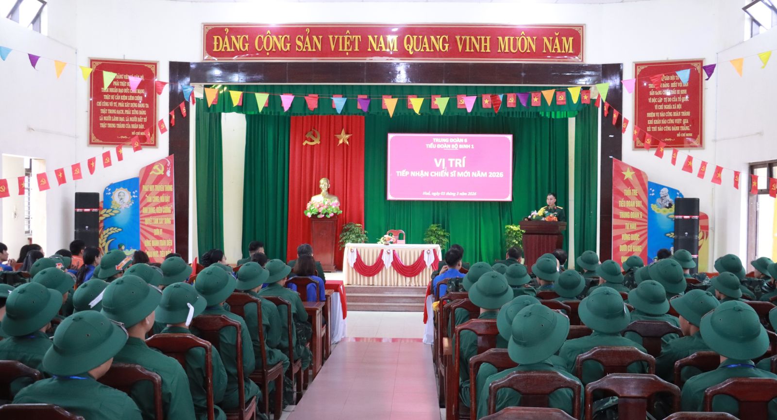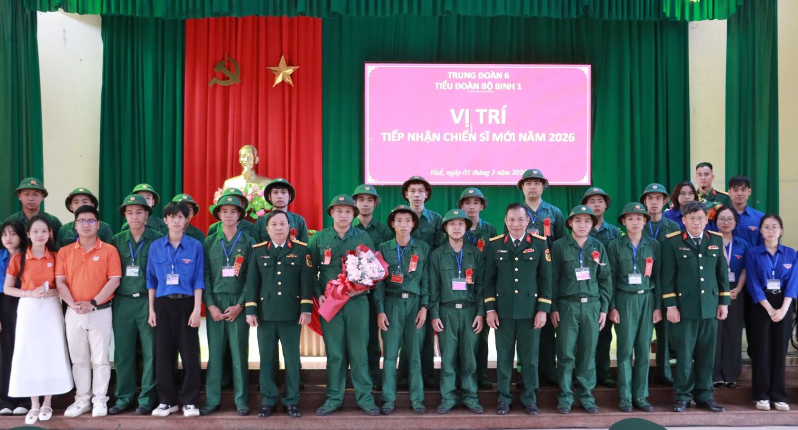 Sáng ngày 5/3, sau khi các địa phương trên địa bàn thành phố Huế hoàn thành công tác giao nhận quân, Bộ Chỉ huy Quân sự (CHQS) thành phố chỉ đạo Trung đoàn 6 tổ chức tiếp nhận chiến sĩ mới nhập ngũ năm 2026. Đại tá Trương Viết Hải, Thành ủy viên, Phó Bí thư thường trực Đảng ủy, Chính ủy dẫn đầu đoàn công tác Bộ CHQS thành phố đã đến kiểm tra, động viên chiến sĩ mới.