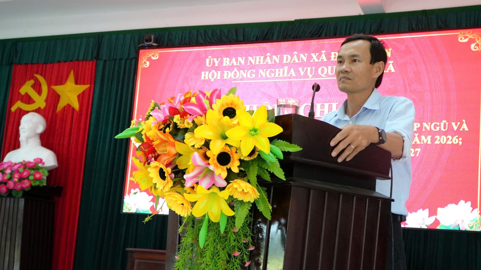 Phát biểu kết luận Hội nghị đồng chí Nguyễn Ngọc Tiến – Phó Bí thư Đảng ủy, Chủ tịch UBND xã, Chủ tịch Hội đồng Nghĩa vụ Quân sự xã yêu cầu các thành viên Hội đồng Nghĩa vụ quân sự phát huy vai trò tham mưu, phối hợp chặt chẽ với các lực lượng liên quan, quyết tâm hoàn thành tốt chỉ tiêu tuyển quân năm 2027 với chất lượng ngày càng cao, góp phần xây dựng lực lượng vũ trang vững mạnh, đáp ứng yêu cầu nhiệm vụ trong tình hình mới.