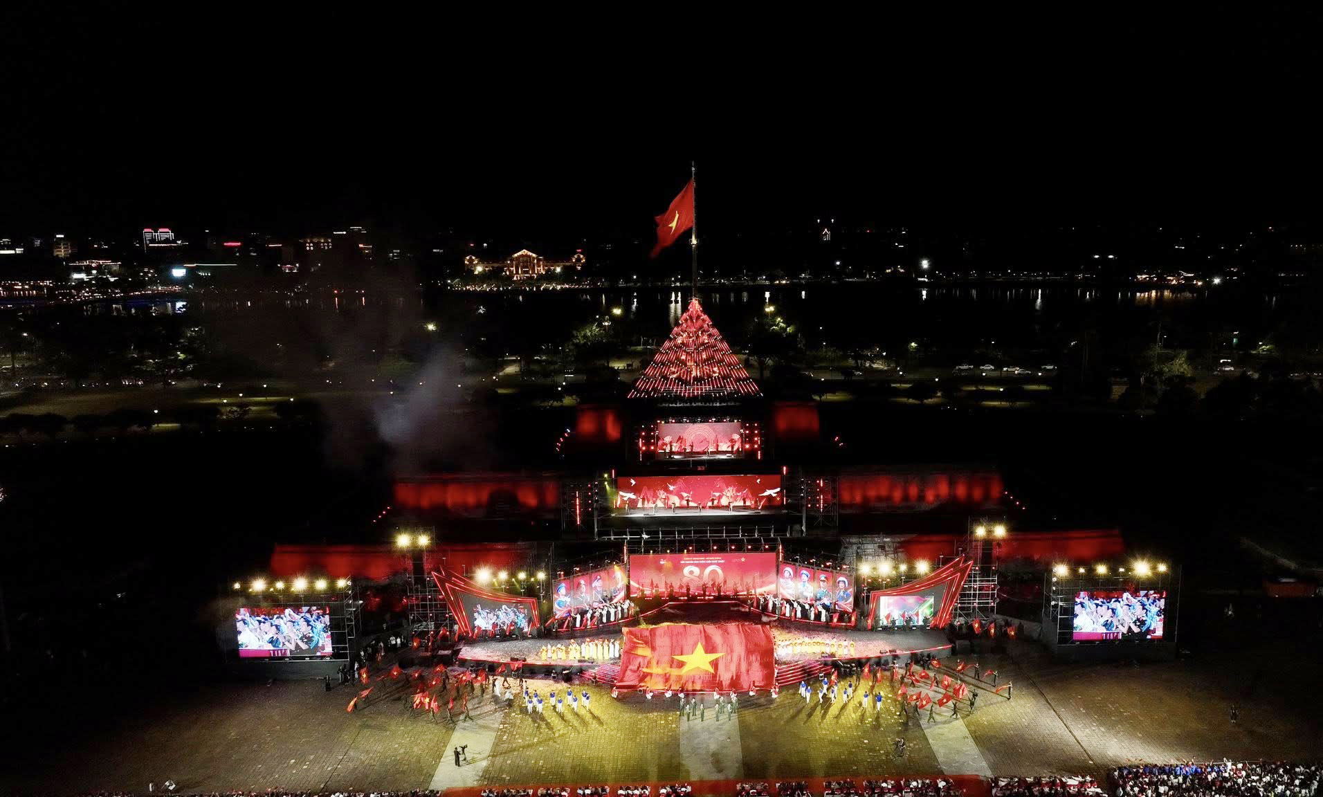 Tối 9/8, Cầu truyền hình trực tiếp Chương trình chính luận nghệ thuật “Dưới cờ vinh quang” đồng loạt diễn ra tại ba điểm cầu Hà Nội, Huế, TP. Hồ Chí Minh với sự tham dự của hơn 12.000 đại biểu và khách mời. Đây là chương trình cấp quốc gia, được tổ chức nhân kỷ niệm 80 năm Cách mạng Tháng Tám thành công (19/8/1945-19/8/2025) và Quốc khánh nước Cộng hòa XHCN Việt Nam (2/9/1945-2/9/2025). Sự kiện do Quân ủy Trung ương chỉ đạo, Tổng cục Chính trị Quân đội Nhân dân Việt Nam chủ trì, phối hợp với các địa phương thực hiện.