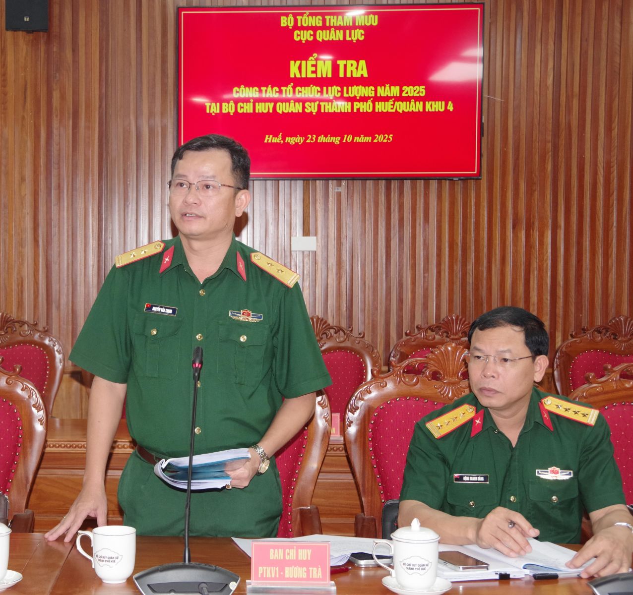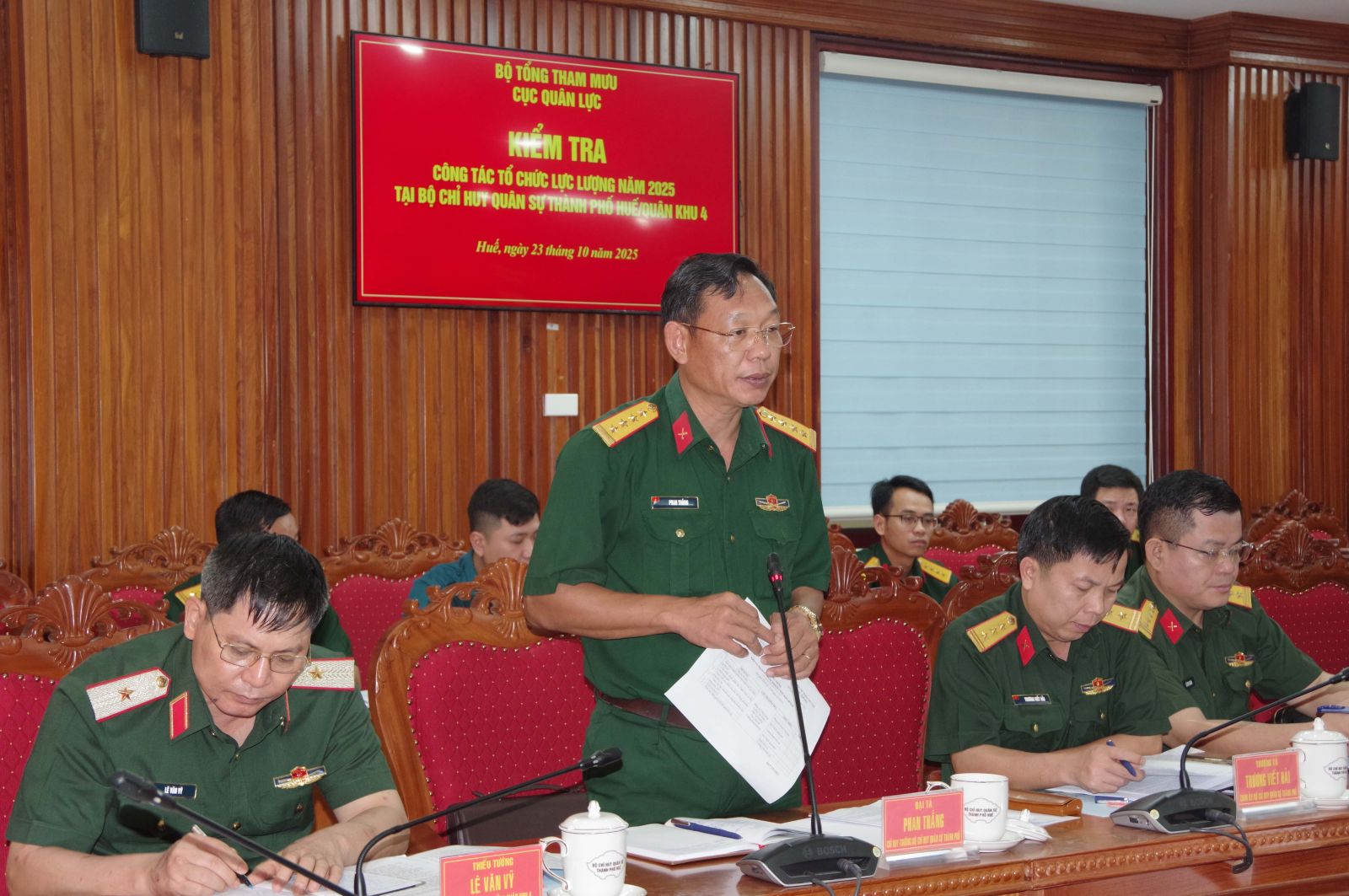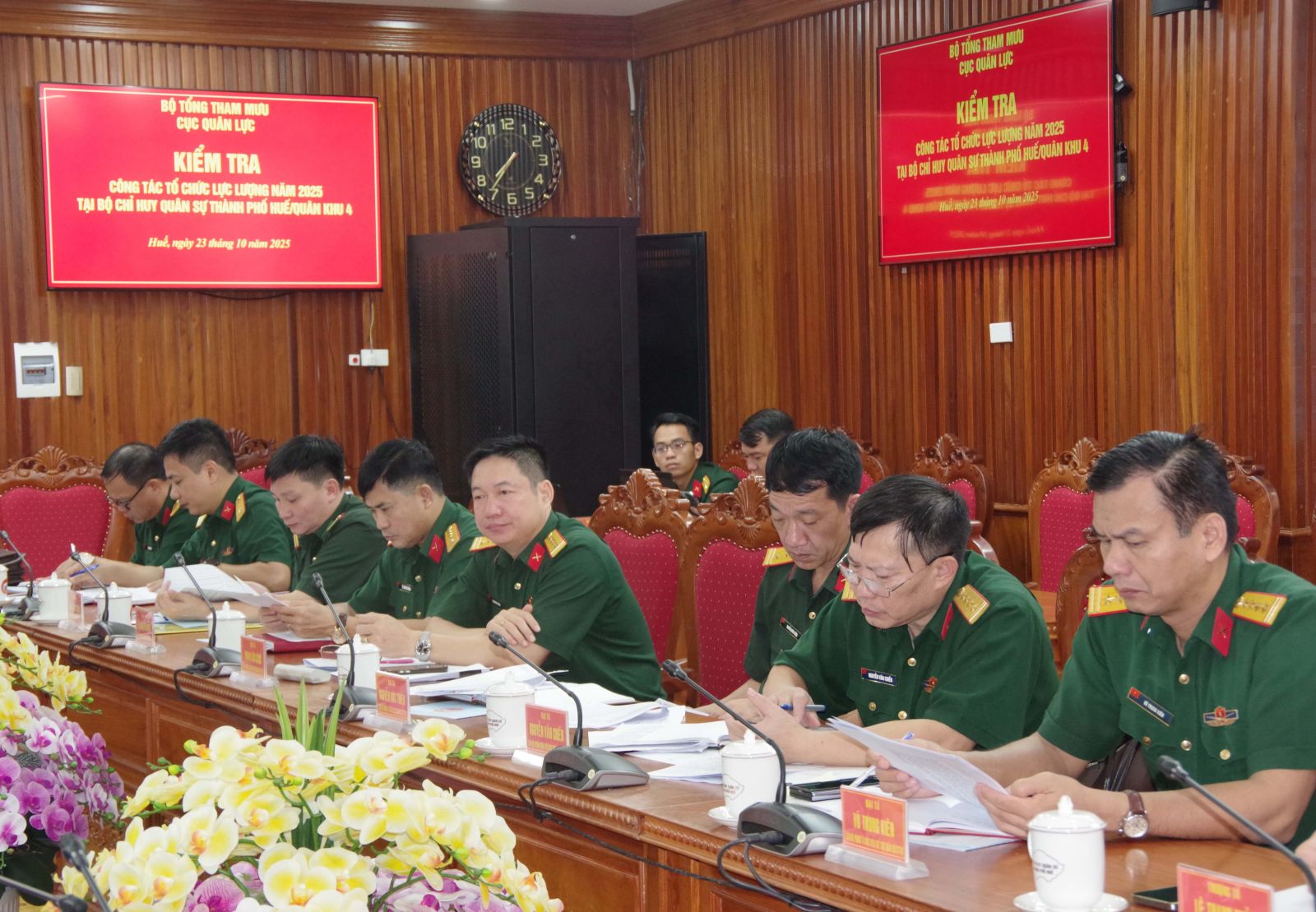 Cục Quân lực, Bộ Tổng tham mưu kiểm tra công tác tổ chức lực lượng tại Bộ CHQS thành phố Huế