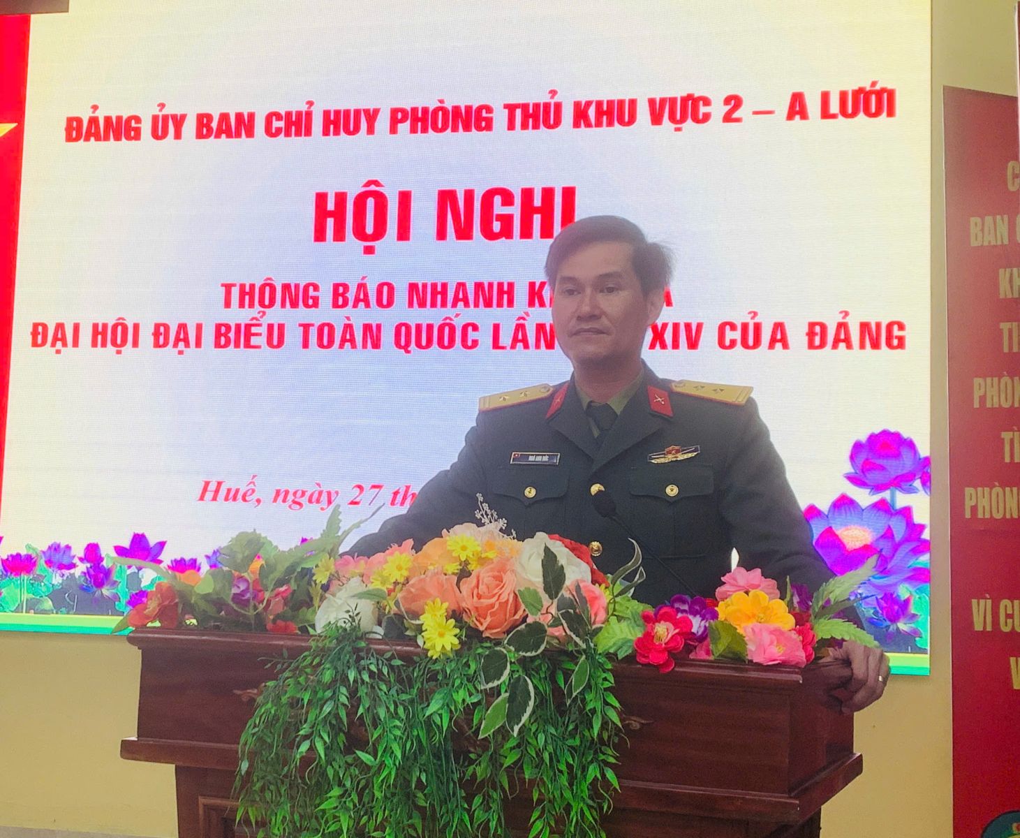 Đảng ủy Ban Chỉ huy Phòng thủ khu vực 2 - A Lưới đã tổ chức Hội nghị thông báo nhanh kết quả Đại hội Đại biểu toàn quốc lần thứ XIV của Đảng.