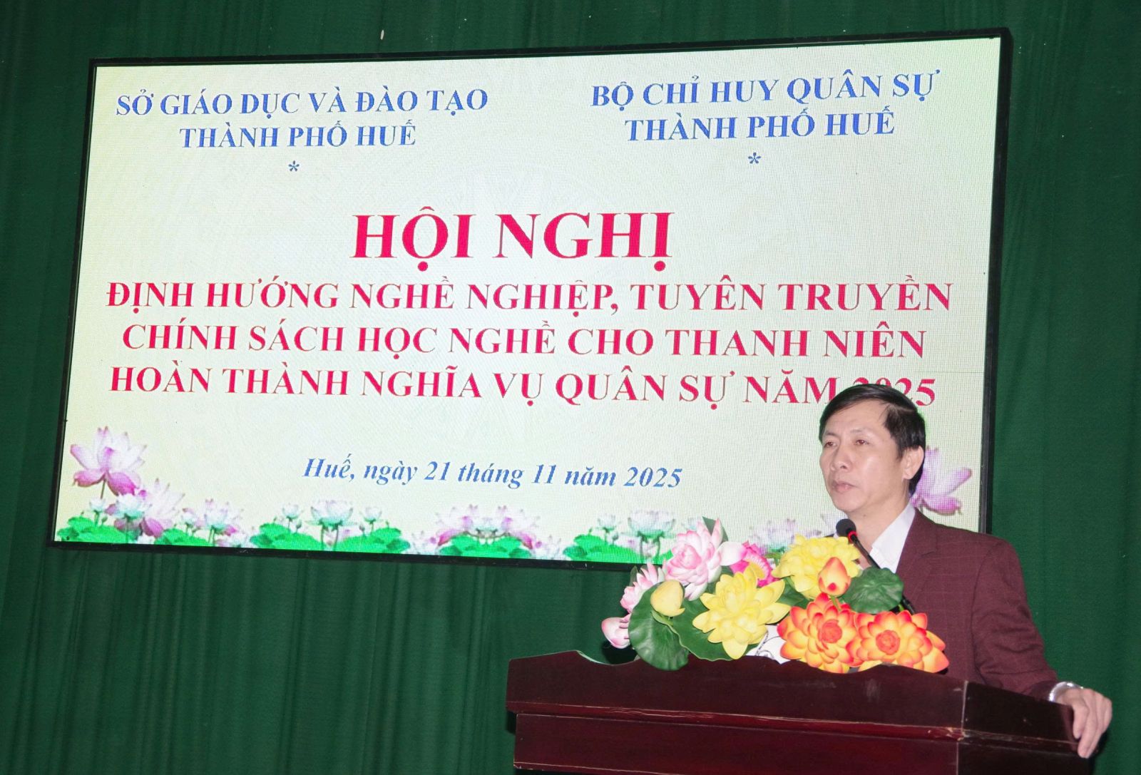 Nhằm hỗ trợ định hướng nghề nghiệp, đào tạo nghề và giới thiệu việc làm cho quân nhân hoàn thành nghĩa vụ quân sự. Sáng ngày 21/11, Sở giáo dục và đào tạo phối hợp với Bộ CHQS Thành phố Huế tổ chức hội nghị định hướng nghề nghiệp và tuyên truyền chính sách học nghề cho gần 200 chiến sĩ chuẩn bị xuất ngũ năm 2025.