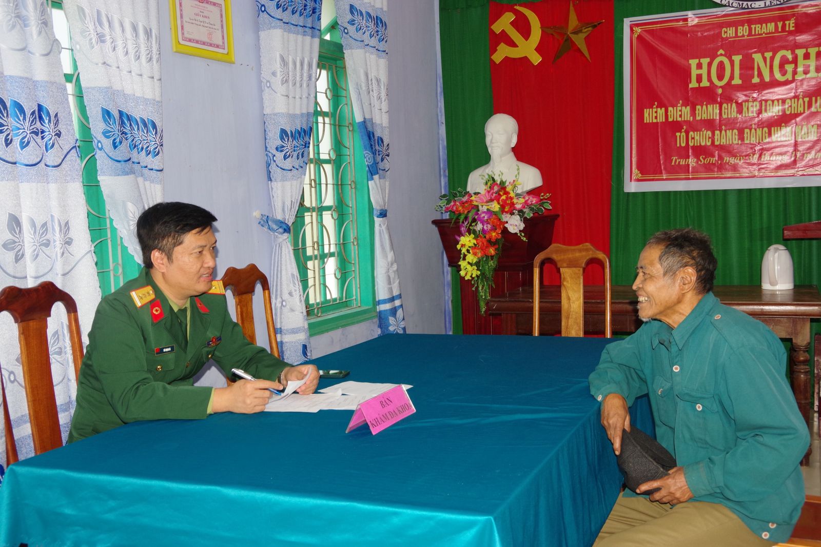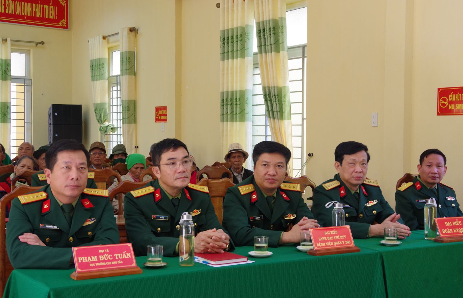 Đại tá Mai Lê Vị - Bí thư Đảng uỷ, Chính uỷ Bệnh viện QY 268, Cục hậu cần Quân khu 4 Cho biết: Có thể nói trong đợt khám, cấp phát thuốc đợt này chúng tôi đã tập trung điều động các Y, Bác sĩ có trình độ chuyên môn cao và các trang thiết bị hiện đại để tiến hành thăm, khám cho bà con nhân dân, đây là những hoạt động ý nghĩa không những để kịp thời giúp bà con chăm sóc sức khoẻ của mình mà cũng là dịp để chúng tôi tri ân đối với các gia đình chính sách, gia đình có công với cách mạng trên địa bà qua đó thặt chặt hơn nữa tình cảm gắn bó keo sơn giữa Bệnh viện và bà nhân dân miền núi