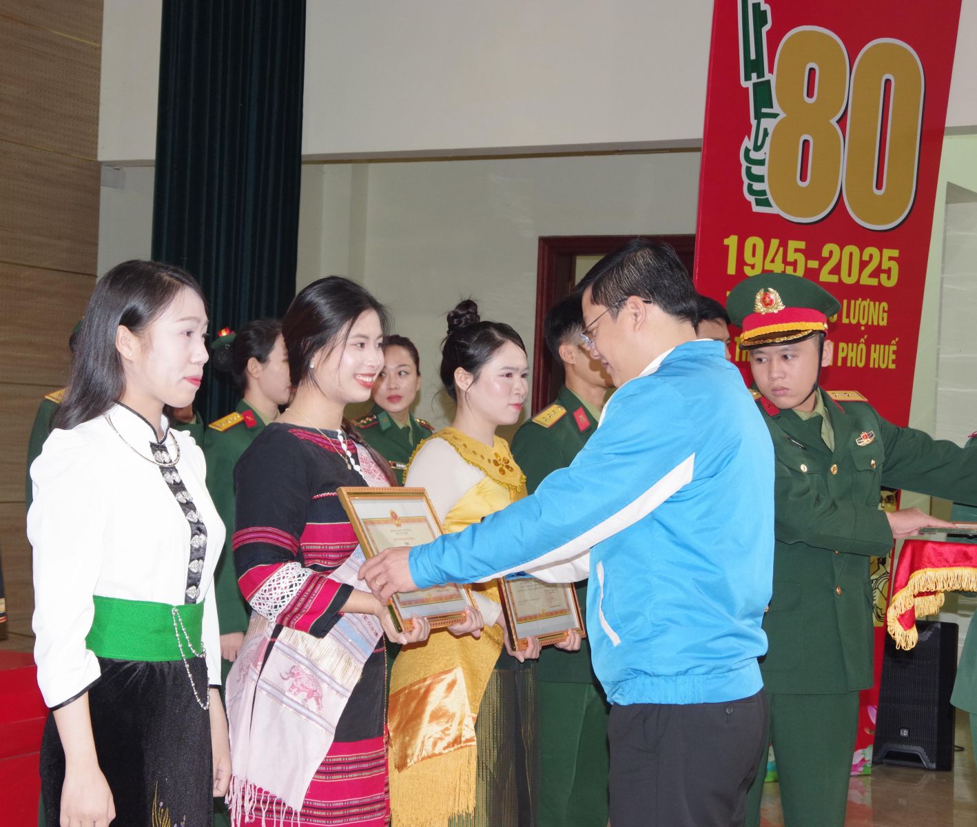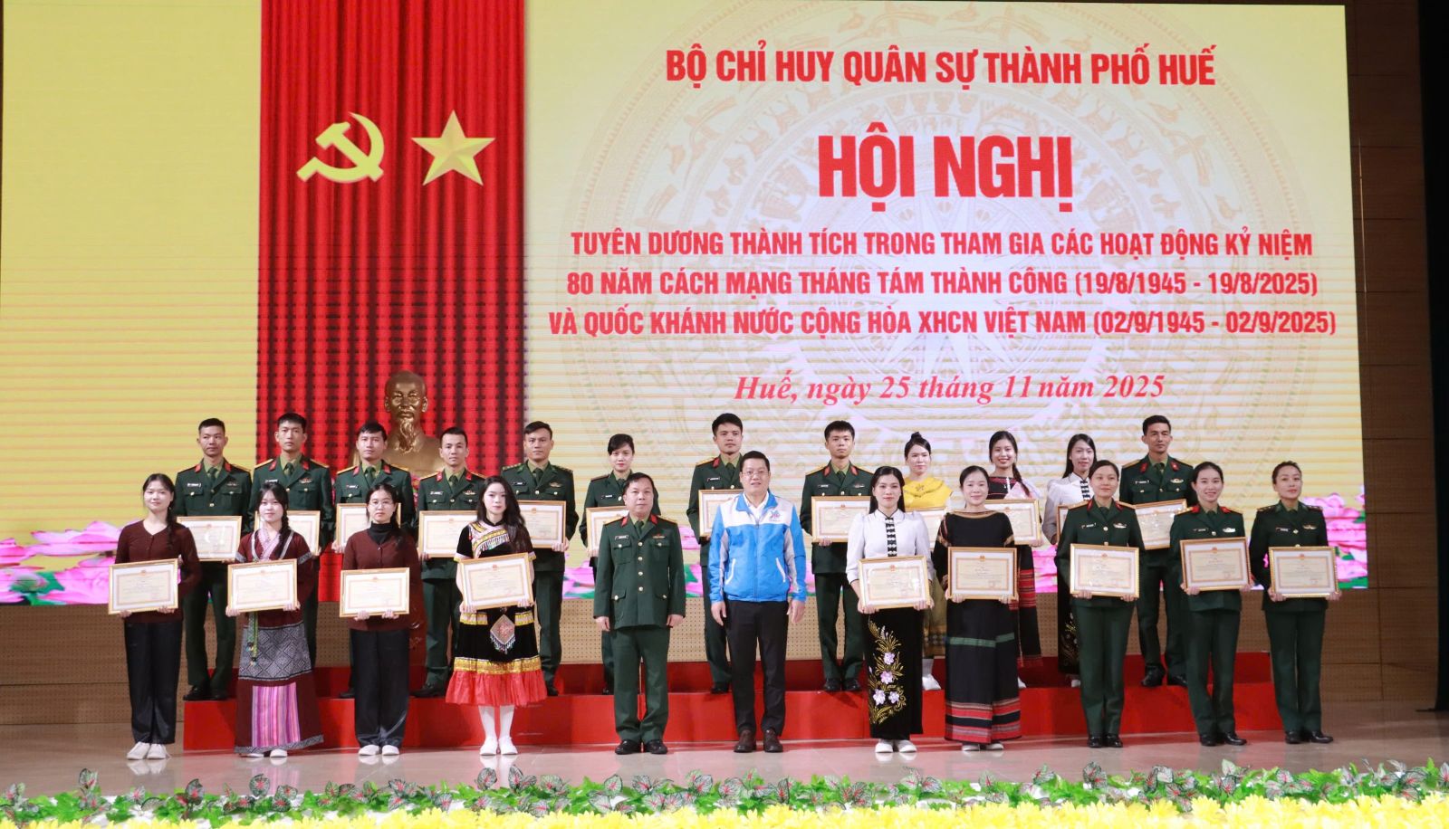 Tại hội nghị Bộ CHQS thành phố Huế đã thừa uỷ quyền của Bộ quốc phòng, Tổng cục chính trị, Bộ Tổng tham mưu Quân đội nhân dân Việt Nam, Bộ Tư lệnh Quân khu 4 và UBND thành phố Huế tổ chức trao tặng 05 Bằng khen của Bộ trưởng Bộ quốc phòng, 02 Bằng khen của Chủ nhiệm Tổng cục chính trị, 17 Bằng khen của Tổng tham mưu trưởng, 14 Bằng khen của Bộ Tư lệnh Quân khu và 02 Bằng khen của UBND thành phố Huế cho các tập thể, cá nhân đạt thành tích xuất sắc trong tham gia các hoạt động kỷ niệm 80 năm ngày Cách mạng tháng 8 thành công và Quốc khánh nước cộng hoà xã hội chủ nghĩa Việt Nam.