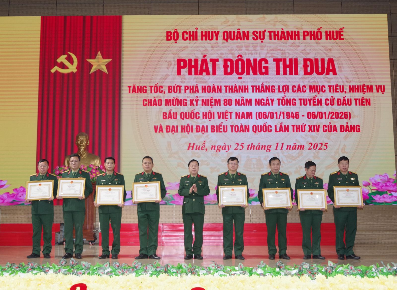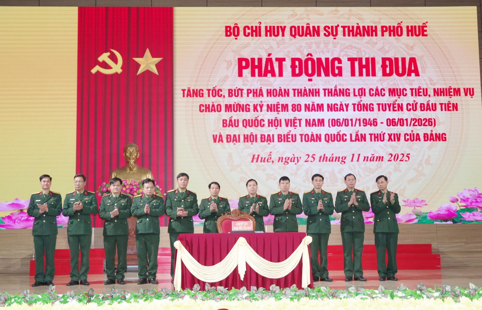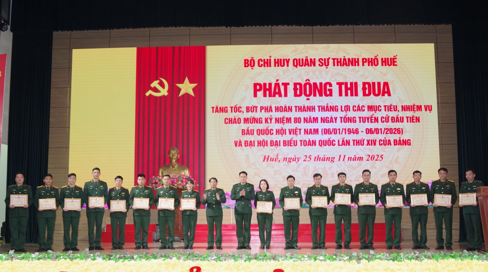 Sáng ngày 25/11, Bộ CHQS thành phố Huế đã tổ chức hội nghị tuyên dương các tập thể, cá nhân có thành tích xuất sắc trong tham gia các hoạt động kỷ niệm 80 năm cách mạng tháng 8 thành công (19/8/1945 – 19/8/2025) và quốc khánh nước cộng hoà xã hội chủ nghĩa Việt Nam (02/9/1945 – 02/9/2025). Thông báo nhanh kết quả hội nghị lần thứ 14 của Ban chấp hành Trung ương Đảng khoá XIII và Sơ kết phong trào thi đua cao điểm "Phất cao cờ hồng tháng 8 - Thi đua giành 3 nhất". Thượng tá Trương Viết Hải - Thành uỷ viên, Phó bí thư thường trực Đảng uỷ, Chính uỷ Bộ CHQS thành phố chủ trì các hội nghị. Tham dự Hội nghị có đồng chí Nguyễn Thanh Hoài - Thành uỷ viên, Bí thư Thành Đoàn kiêm Phó Chủ tịch Ủy ban MTTQ TP Huế, đồng chí Phan Đỗ Quốc Hùng - Trưởng ban Ban Thi đua - Khen thưởng, Sở Nội vụ. Đại tá Hà Văn Ái - UVTV đảng uỷ, Phó Chính uỷ, Đại tá Hoàng Minh Hùng - UVTV đảng uỷ, Phó Chỉ huy trưởng Bộ CHQS thành phố kiêm Chỉ huy trưởng Ban chỉ huy Bộ đội Biên phòng, Đại tá Đặng Ngọc Hiệu - Phó Chính uỷ Bộ CHQS thành phố kiêm Chính uỷ Ban Chỉ huy Bộ đội Biên Phòng, Thượng tá Hồ Đắc Quốc - Phó Chỉ huy trưởng Bộ CHQS thành phố.