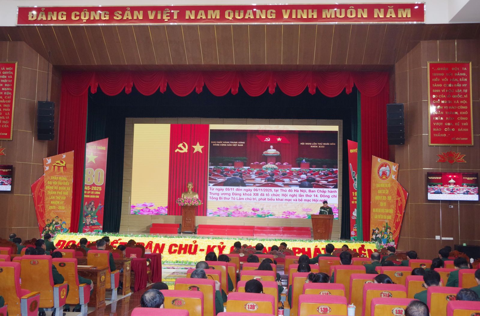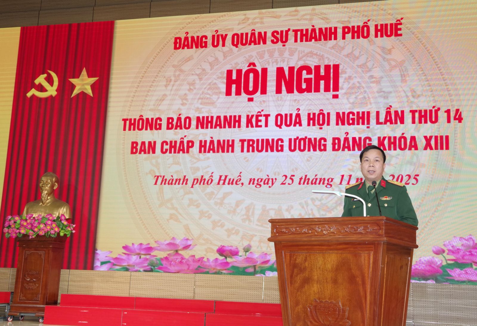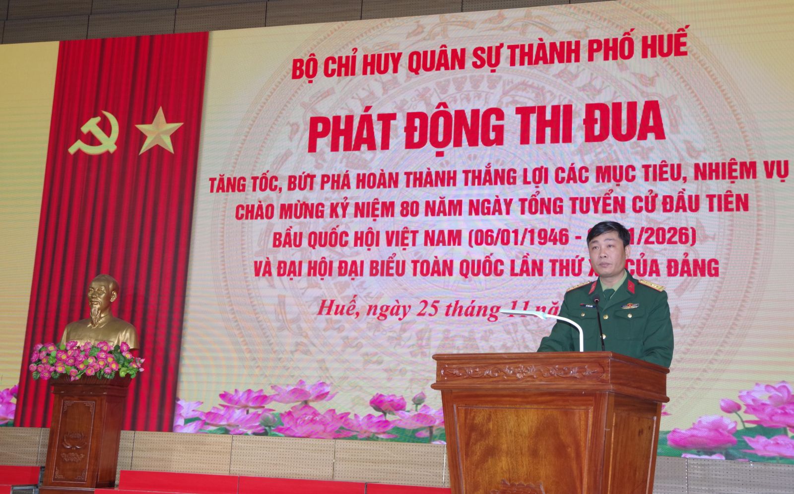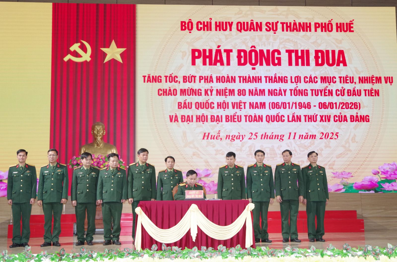 Sáng ngày 25/11, Bộ CHQS thành phố Huế đã tổ chức hội nghị tuyên dương các tập thể, cá nhân có thành tích xuất sắc trong tham gia các hoạt động kỷ niệm 80 năm cách mạng tháng 8 thành công (19/8/1945 – 19/8/2025) và quốc khánh nước cộng hoà xã hội chủ nghĩa Việt Nam (02/9/1945 – 02/9/2025). Thông báo nhanh kết quả hội nghị lần thứ 14 của Ban chấp hành Trung ương Đảng khoá XIII và Sơ kết phong trào thi đua cao điểm "Phất cao cờ hồng tháng 8 - Thi đua giành 3 nhất". Thượng tá Trương Viết Hải - Thành uỷ viên, Phó bí thư thường trực Đảng uỷ, Chính uỷ Bộ CHQS thành phố chủ trì các hội nghị. Tham dự Hội nghị có đồng chí Nguyễn Thanh Hoài - Thành uỷ viên, Bí thư Thành Đoàn kiêm Phó Chủ tịch Ủy ban MTTQ TP Huế, đồng chí Phan Đỗ Quốc Hùng - Trưởng ban Ban Thi đua - Khen thưởng, Sở Nội vụ. Đại tá Hà Văn Ái - UVTV đảng uỷ, Phó Chính uỷ, Đại tá Hoàng Minh Hùng - UVTV đảng uỷ, Phó Chỉ huy trưởng Bộ CHQS thành phố kiêm Chỉ huy trưởng Ban chỉ huy Bộ đội Biên phòng, Đại tá Đặng Ngọc Hiệu - Phó Chính uỷ Bộ CHQS thành phố kiêm Chính uỷ Ban Chỉ huy Bộ đội Biên Phòng, Thượng tá Hồ Đắc Quốc - Phó Chỉ huy trưởng Bộ CHQS thành phố.